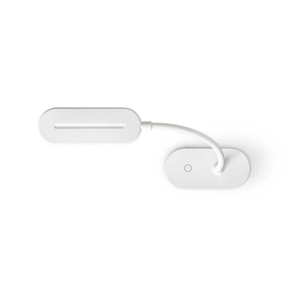 Przenośna lampka biurkowa wykonana z ABS (65% rABS) o mocy 140 lumenów z klipsem do mocowania do powierzchni. Podstawa jest antypoślizgowa, a rurka jest plastyczna w zakresie 360º, co ułatwia regulację kierunku światła. Posiada włącznik/wyłącznik i 3 poziomy jasności do wyboru. Akumulator ma pojemność 1200 mAh, co zapewnia około 30 godzin autonomii w trybie słabego oświetlenia, 7 godzin w trybie średniego oświetlenia i 3 godziny w trybie wysokiego oświetlenia. W zestawie kabel USB-C do ładowania. Dostarczana w pudełku prezentowym z papieru pakowego