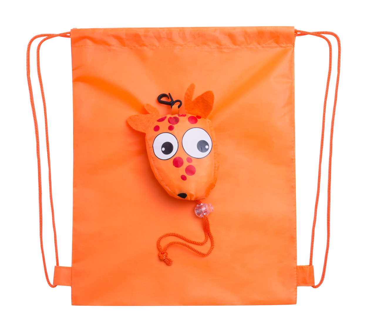 Składany worek ze sznurkami dla dzieci z woreczkiem w kształcie zwierzaka i karabińczykiem, 190T poliester.