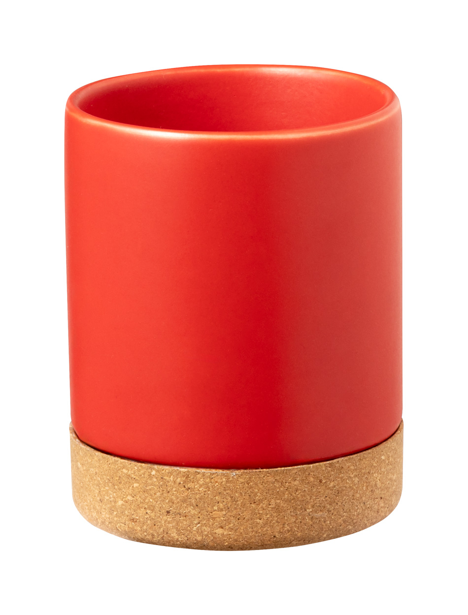 Kubek ceramiczny z podstawą z naturalnego korka, pojemność 350 ml. W pudełku z papieru kraft.