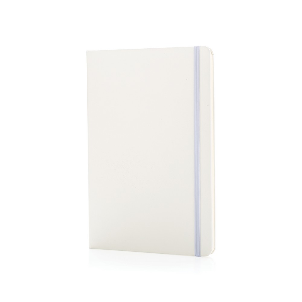 Notatnik A5 (72 puste kartki 70 g/m2 w kolorze kremowym), szkicownik, twarda okładka, tasiemka zakładkowa oraz elastyczna opaska do zamykania, ślad węglowy produktu: 0,54 kg CO2
