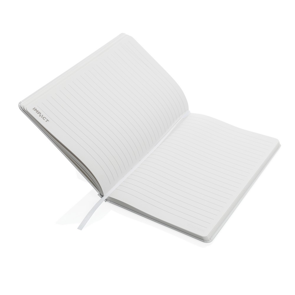 Notatnik A5 (64 białe kartki 58 g/m2 w linie), twarda okładka, notatnik wykonany z papieru kamiennego, który składa się w 80% z proszku mineralnego i 20% nietoksycznego HDPE (czysty plastik), 2% wpływów z każdego sprzedanego produktu z kolekcji Impact jest przekazywane na rzecz Water.org