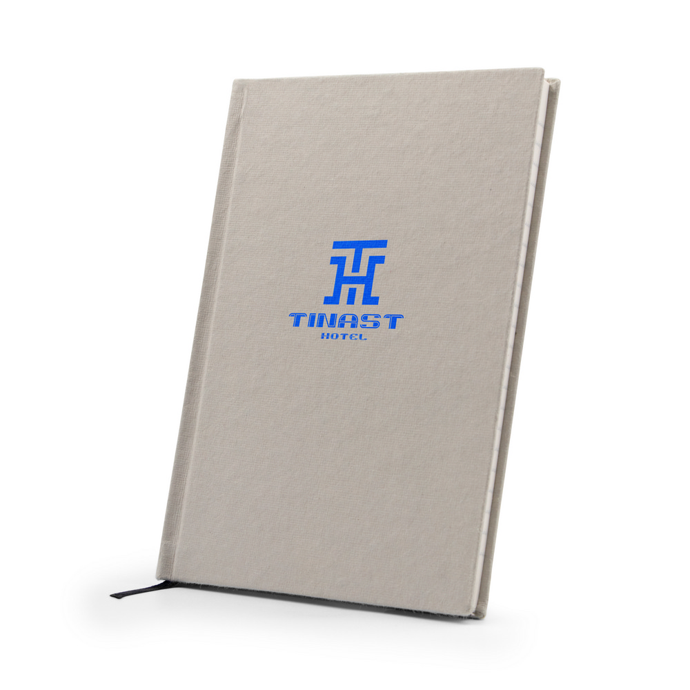 Notatnik B’RIGHT w formacie ok. A5, posiada 80 kartek w linie (160 stron), tasiemka zakładkowa umożliwia wygodne zaznaczanie ostatniej strony lub ważniejszych notatek, twarda okładka wykonana z bawełny z recyklingu, kartki z papieru z recyklingu