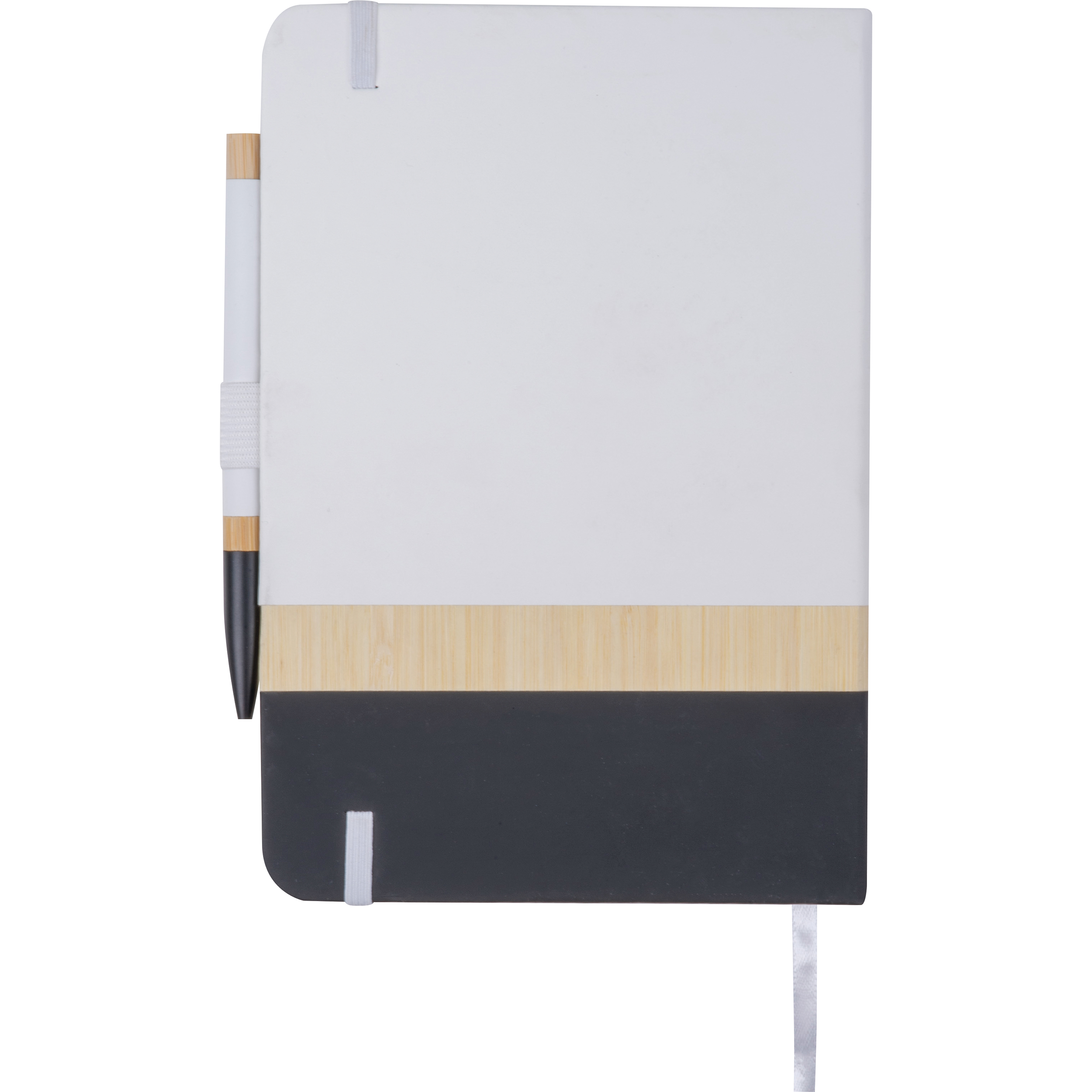 Notatnik A5 z długopisem. Notatnik wykonany jest z papieru z recyklingu (160 stron w linie), bambusa i poliuretanu. Pasujący długopis wykonany jest z aluminium i bambusa. Idealny do notatek, pomysłów, szkiców i nie tylko.