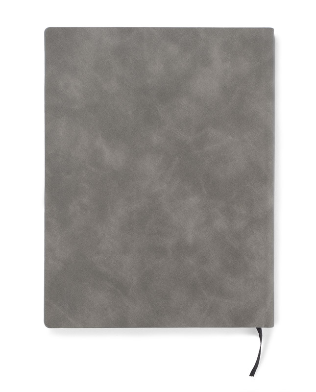 BLAKK to klasyczny notes w okładce z materiału skóropodobnego (PU) w szarym kolorze. Czarne krawędzie kartek nadają mu elegancki wygląd. Notes zawiera 80 białych kartek w linie wykonanych z papieru. Okładka posiada gumkę – uchwyt na długopis oraz czarną zakładkę – wstążeczkę.