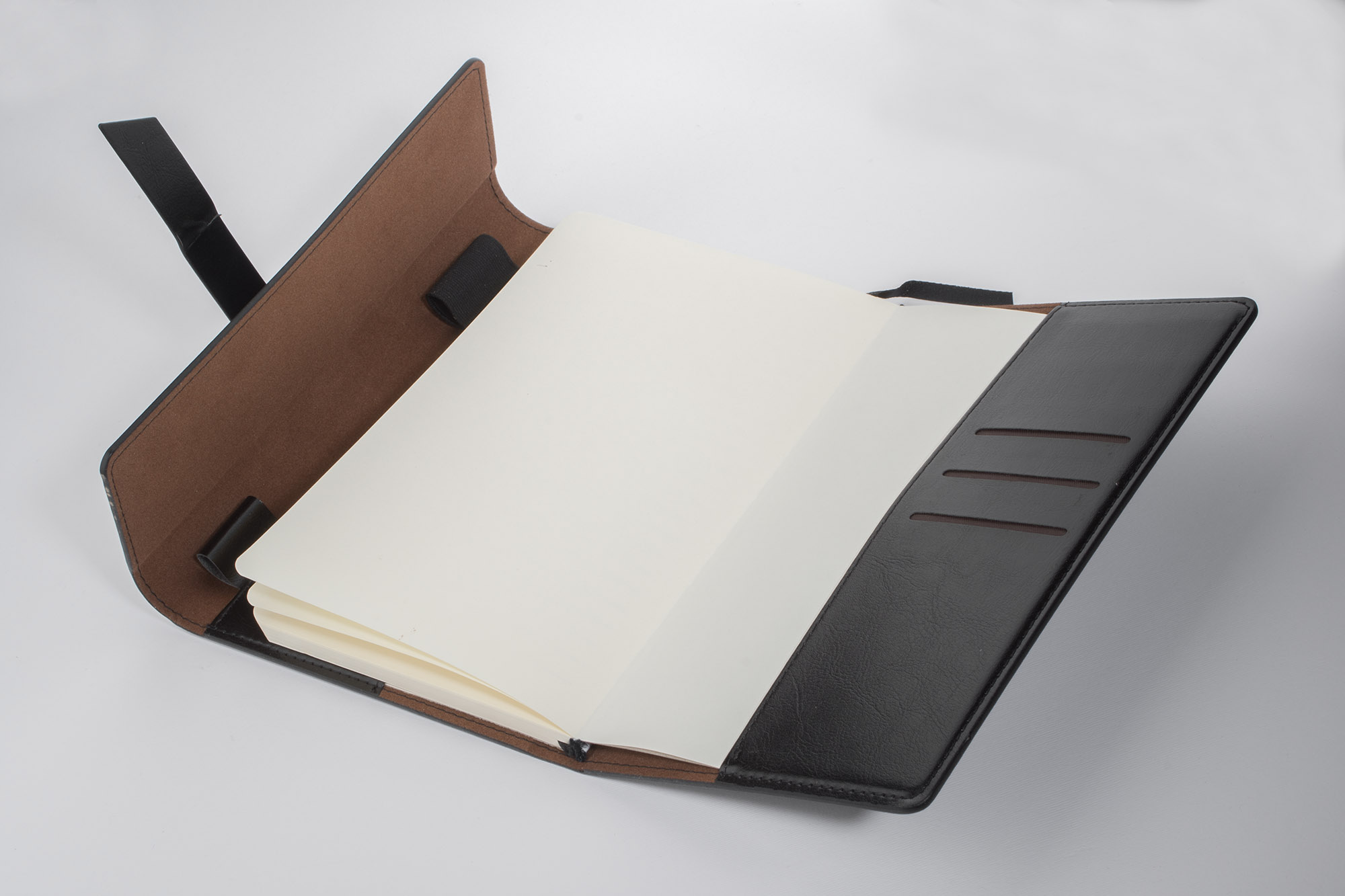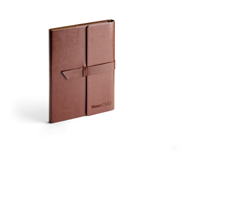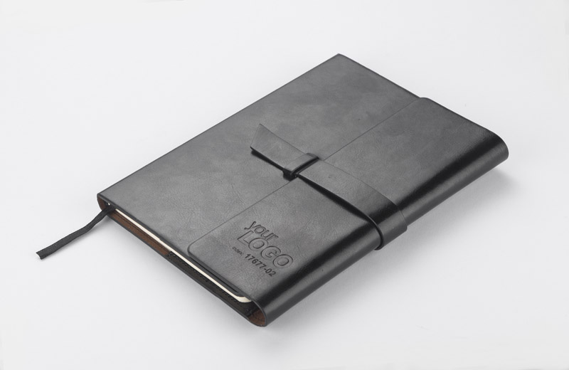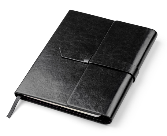 VASCO to elegancki notes formatu A5 w klasycznej okładce wykonanej z materiału skóropodobnego (PU). Notes zawiera 80 kartek w linie oraz praktyczną wstążeczkę – zakładkę. Wewnątrz okładki miejsce na 3 wizytówki, długopis oraz pamięć USB. Okładka nie jest umocowana na stałe do bloku notesu, tylko nasuwana na pierwsze kartki, co daje możliwość wymiany notesu. Notes zamykany za pomocą paska z materiału skóropodobnego (PU).