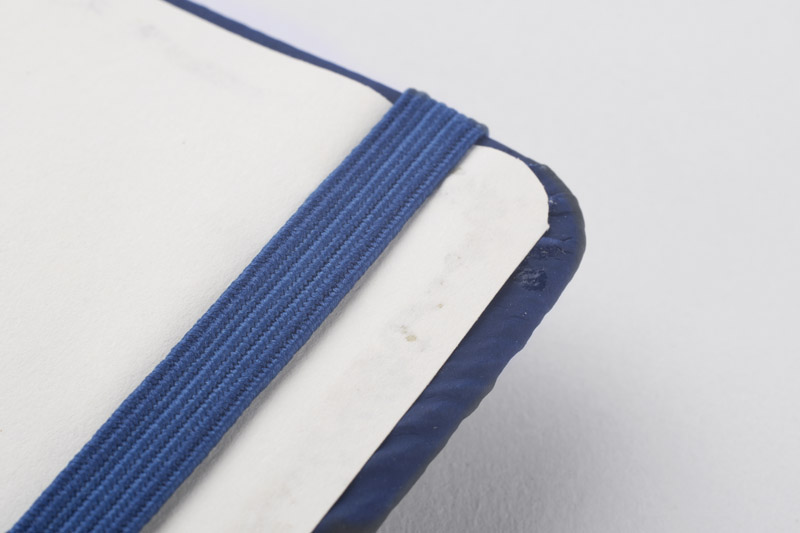 Gustowny notes A6 z kolorową gumką wykonany z materiału skóropodobnego (PU). Notes zawiera 80 kartek ecru w linie koloru pomarańczowego. Logo nadrukujemy na okładce.