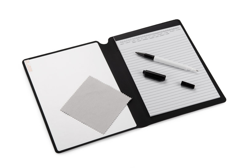 Notes z tablicą suchościeralną LIRA A5 to innowacyjny produkt, który może stać się świetnym upominkiem promocyjnym dla klientów. Rozkładany design sprawia, że jest niezwykle praktyczny — po jednej stronie znajduje się tablica suchościeralna, idealna do szybkiego notowania pomysłów, a po drugiej stronie wysokiej jakości kartki w linie do klasycznych notatek. W zestawie znajduje się również pisak suchościeralny oraz ściereczka do czyszczenia.