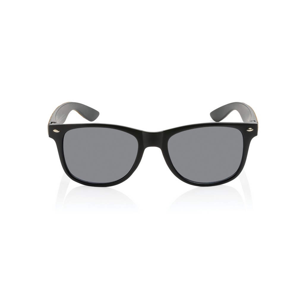 Okulary przeciwsłoneczne z filtrem UV400, wykonane z PC z recyklingu, z korkowymi elementami na zausznikach, certyfikat GRS, pudełko z kraftowego papieru w komplecie, ślad węglowy produktu: 0,08 kg CO2