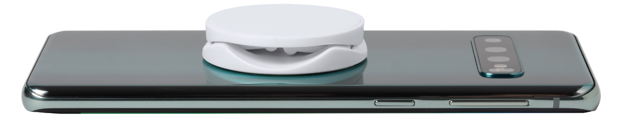 Plastikowy, okrągły uchwyt na telefon z samoprzylepną taśmą.