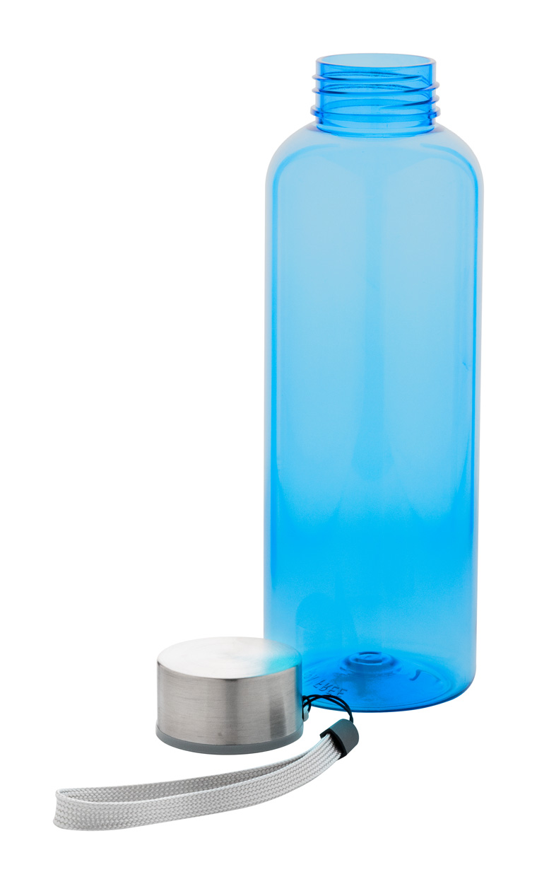Butelka RPET z zakrętką ze stali nierdzewnej i paskiem do noszenia, 500 ml. Nie zawiera BPA. Nie nadaje się do napojów gazowanych.