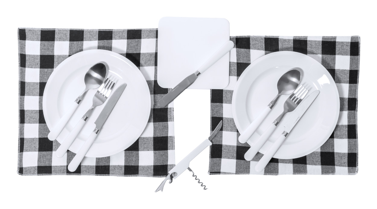 Zestaw piknikowy z13 sztukami zastawy stołowej i sztućców dla 2 osób, w zapinanej na suwak walizce z poliestru 600D RPET.