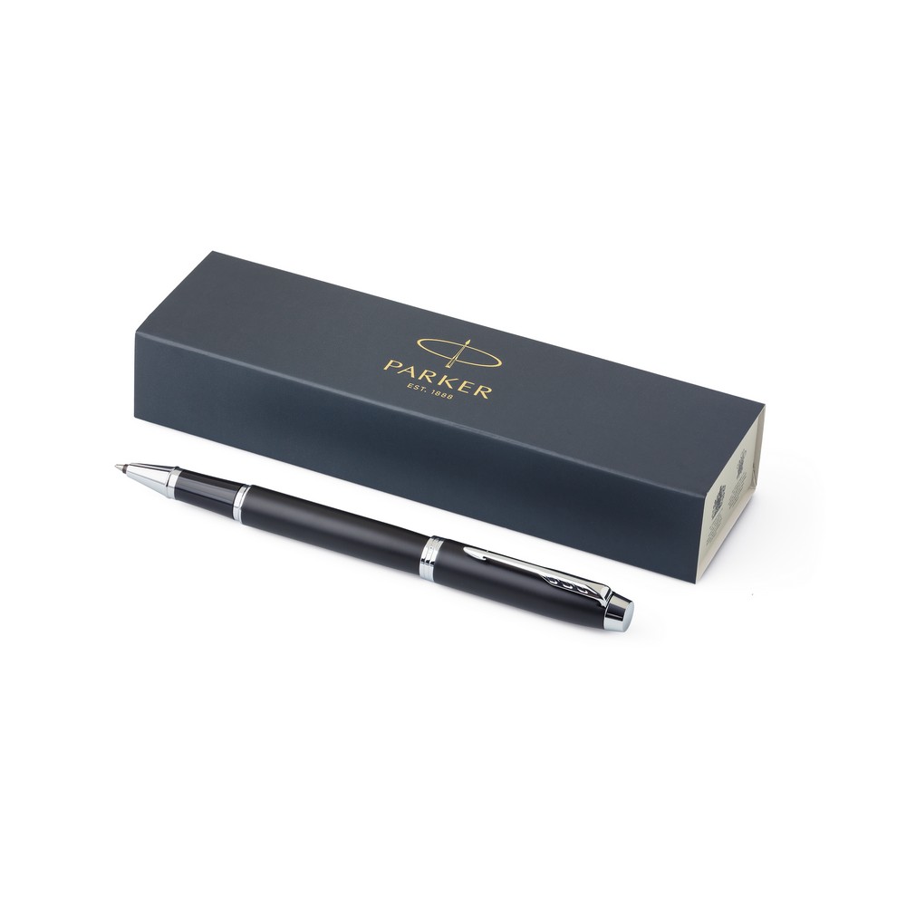 Pióro kulkowe Parker IM, wkład w czarnym kolorze, zapakowany w pudełko upominkowe, produkt wykonany z chromu