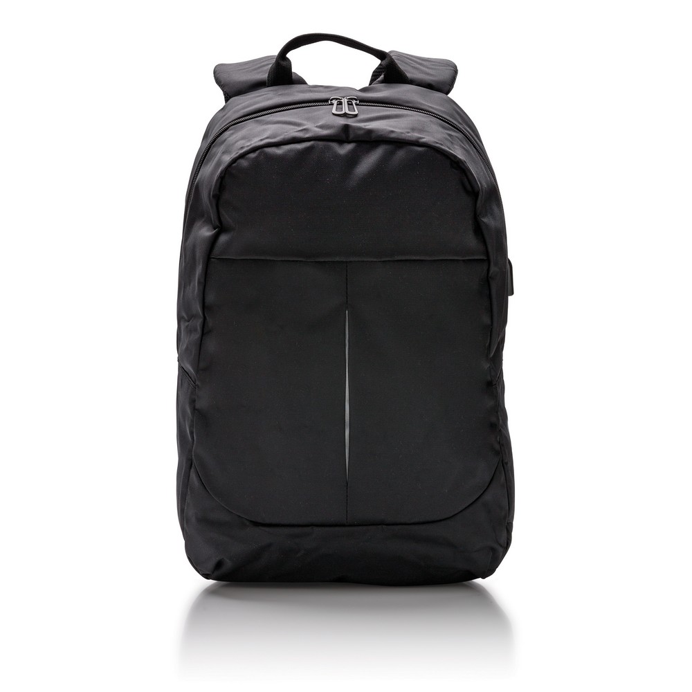 Plecak na laptopa 15″, wykonany z poliestru 600D, posiada wyjście USB do ładowania (power-bank nie jest dołączony), ślad węglowy produktu: 3,36 kg CO2