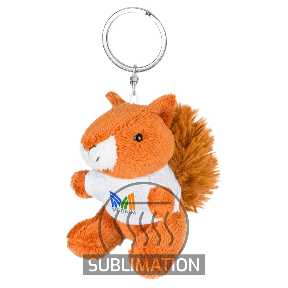Brelok „wiewiórka” z białą koszulką pod nadruk, nieoznakowana koszulka z poliestru jest pakowana oddzielnie, produkt wykonany z pluszu