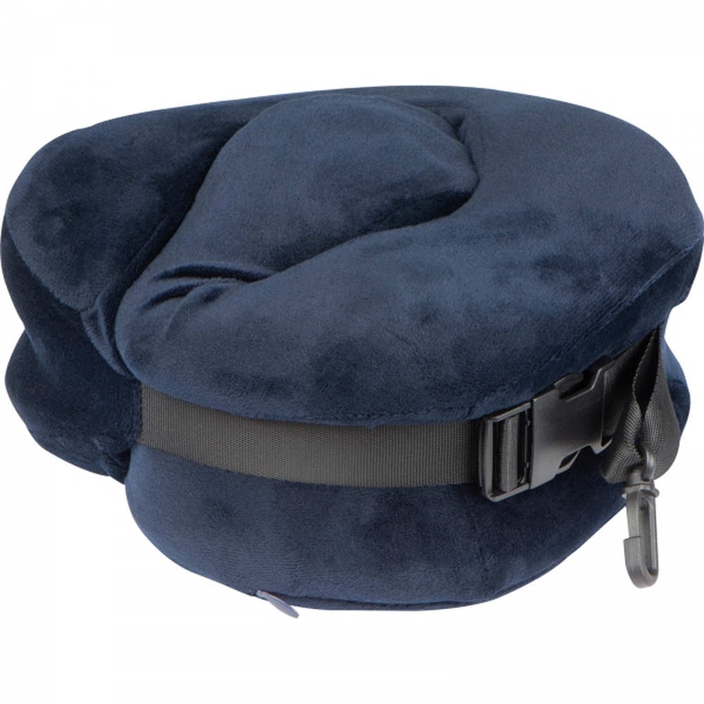 Poduszka podróżna wykonana z pluszu i pianki memory zapamiętującej kształt.