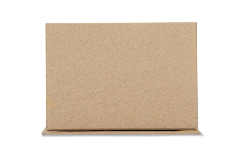 Pojemnik MEFO wykonany został z papieru w kolorze brązowym. Pełni on funkcję przybornika na biurko. Posiada miejsce na długopisy lub inne wybrane przybory, karteczki samoprzylepne do zapisywania notatek, a także miejsce na wizytówkę.