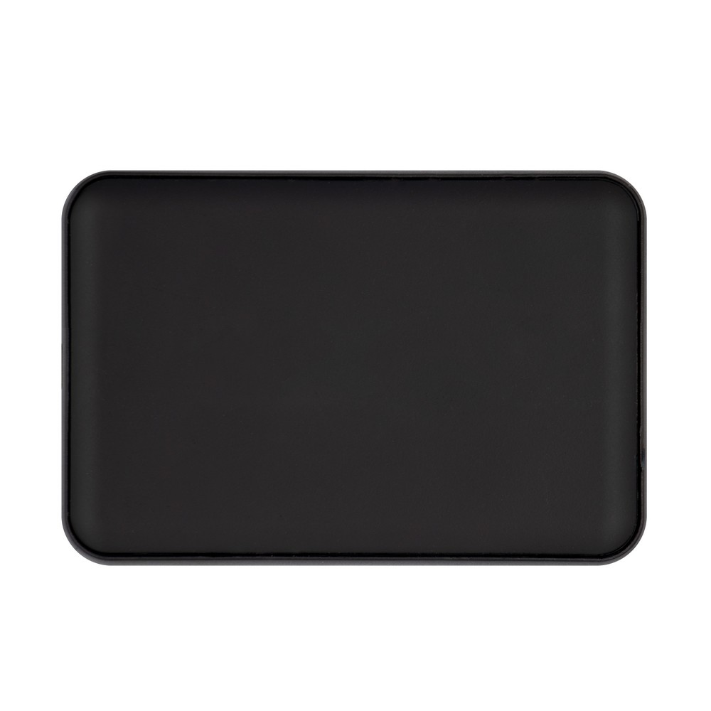 Power bank 5000 mAh wykonany z RPET, grawer ukazuje podświetlaną powierzchnię, 4 diody wskazujące poziom naładowania, 2 wyjścia USB (5V/2A), 2 wejścia (5V/2A): micro USB oraz USB-C, kabel micro USB w komplecie