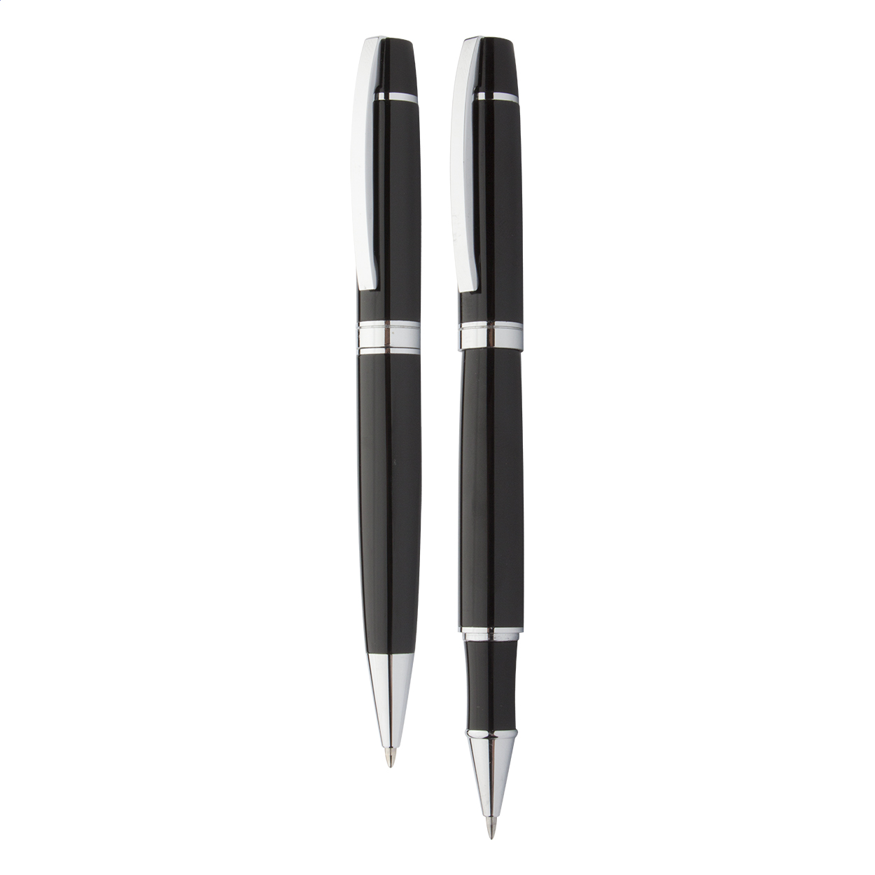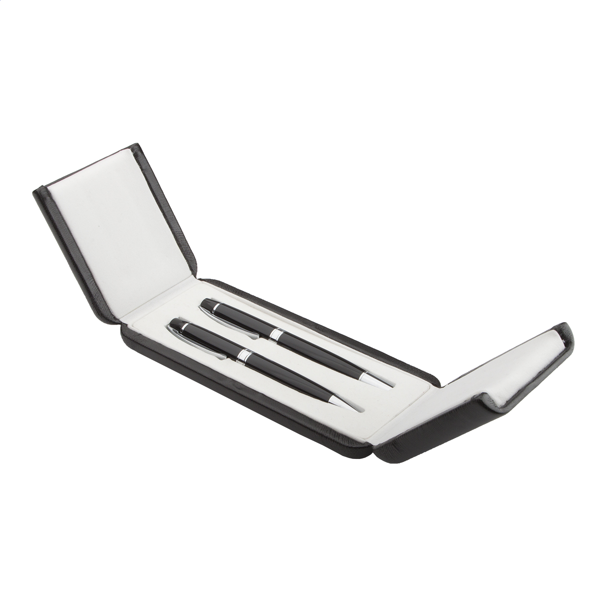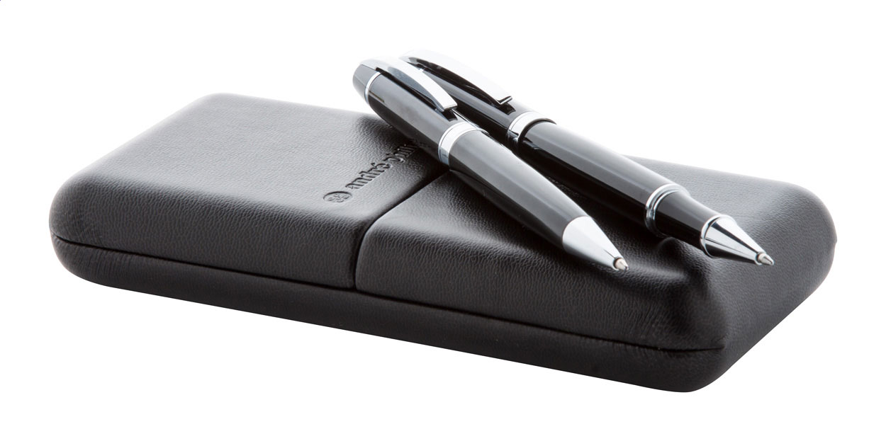 Elegancki zestaw długopisów marki André Philippe zapakowane w pudełko z imitacji skóry, niebieski wkład.