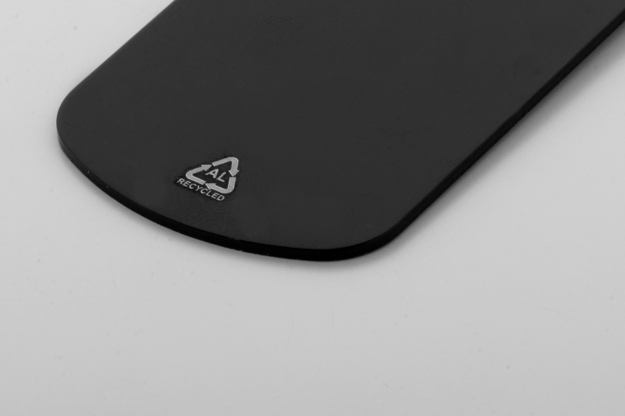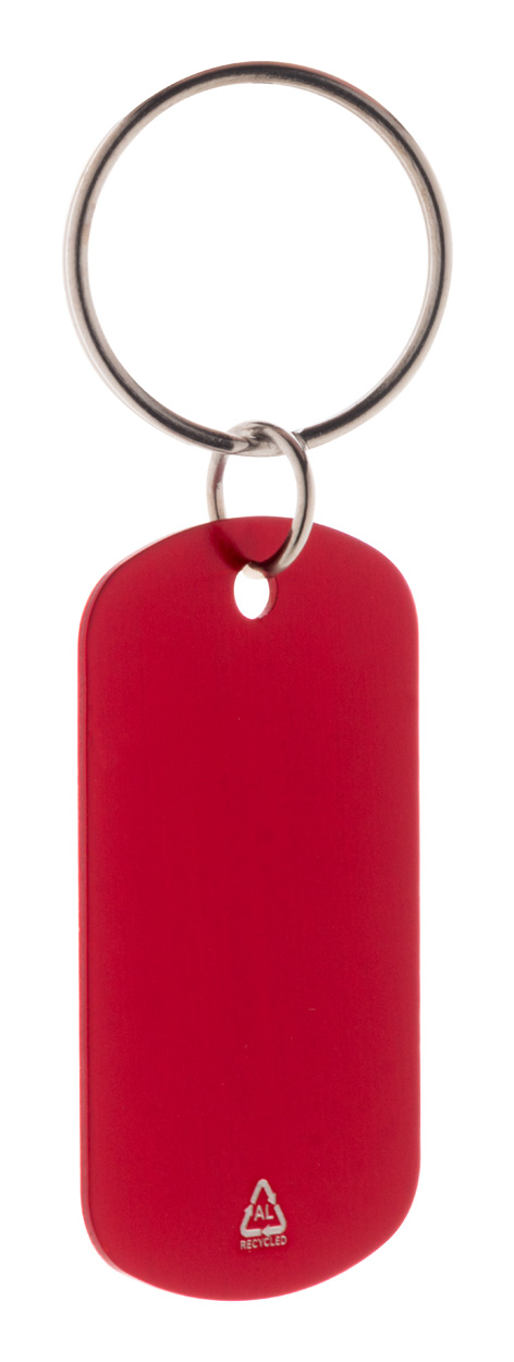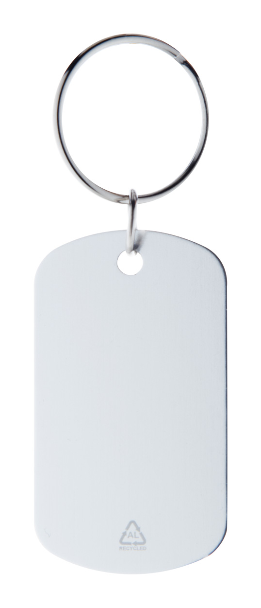 Aluminiowy brelok z recyklingu z metalowym kółkiem.
