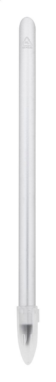 Długopis bezatramentowy z recyklingowanego aluminium z końcówką ze stopu metalu, która utlenia papier. Ten długopis pisze podobnie jak ołówek i jest również zmazywalny.