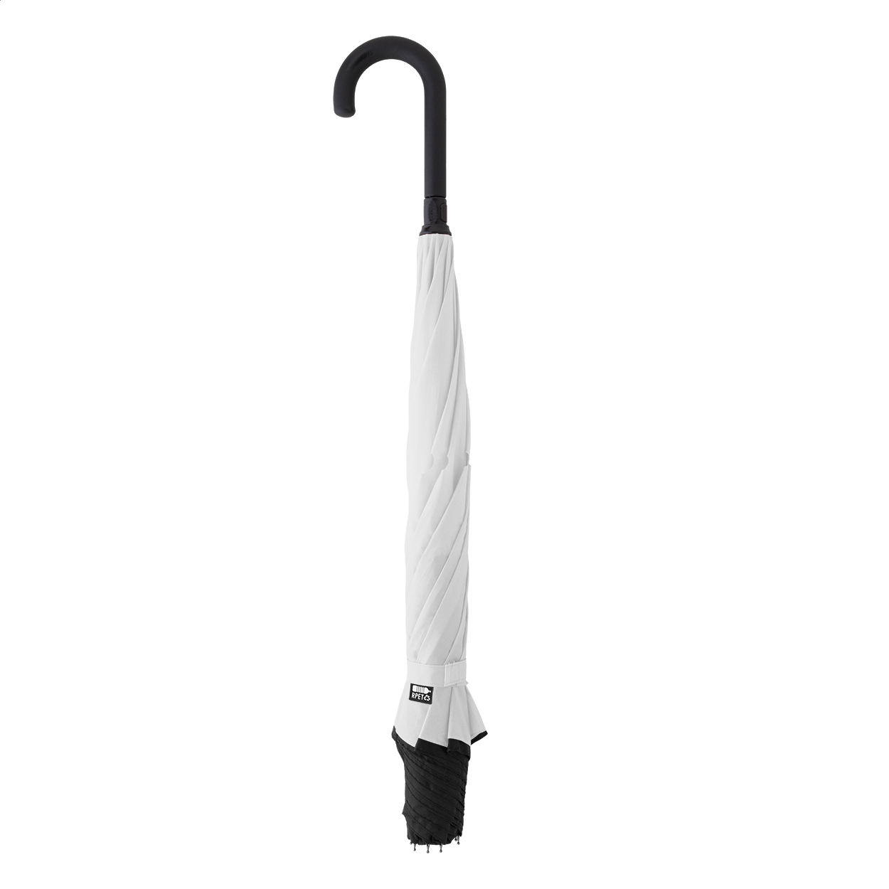 Wiatroodporny parasol manualny, otwierany z tyłu, z 8 panelami, dwuwarstwową, dwukolorową czaszą, metalową ramą, stelażem z włókna szklanego i gumowaną rączką. Pongee 190T RPET. Z charakterystyczną metką RPET.
