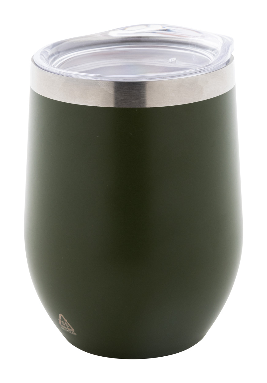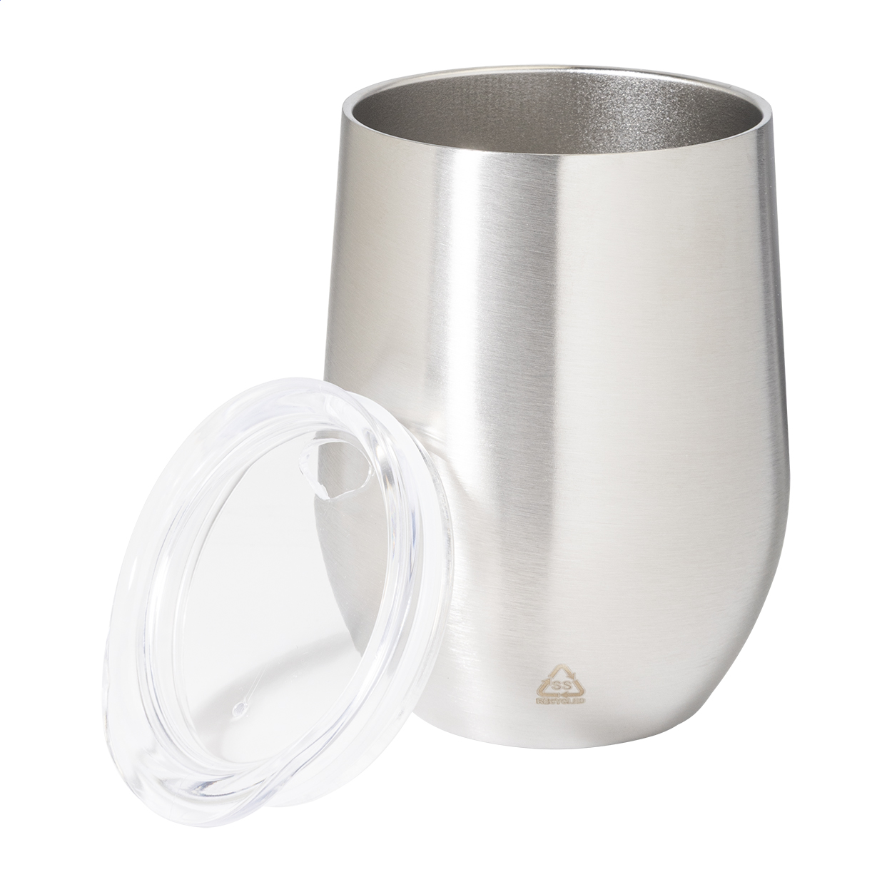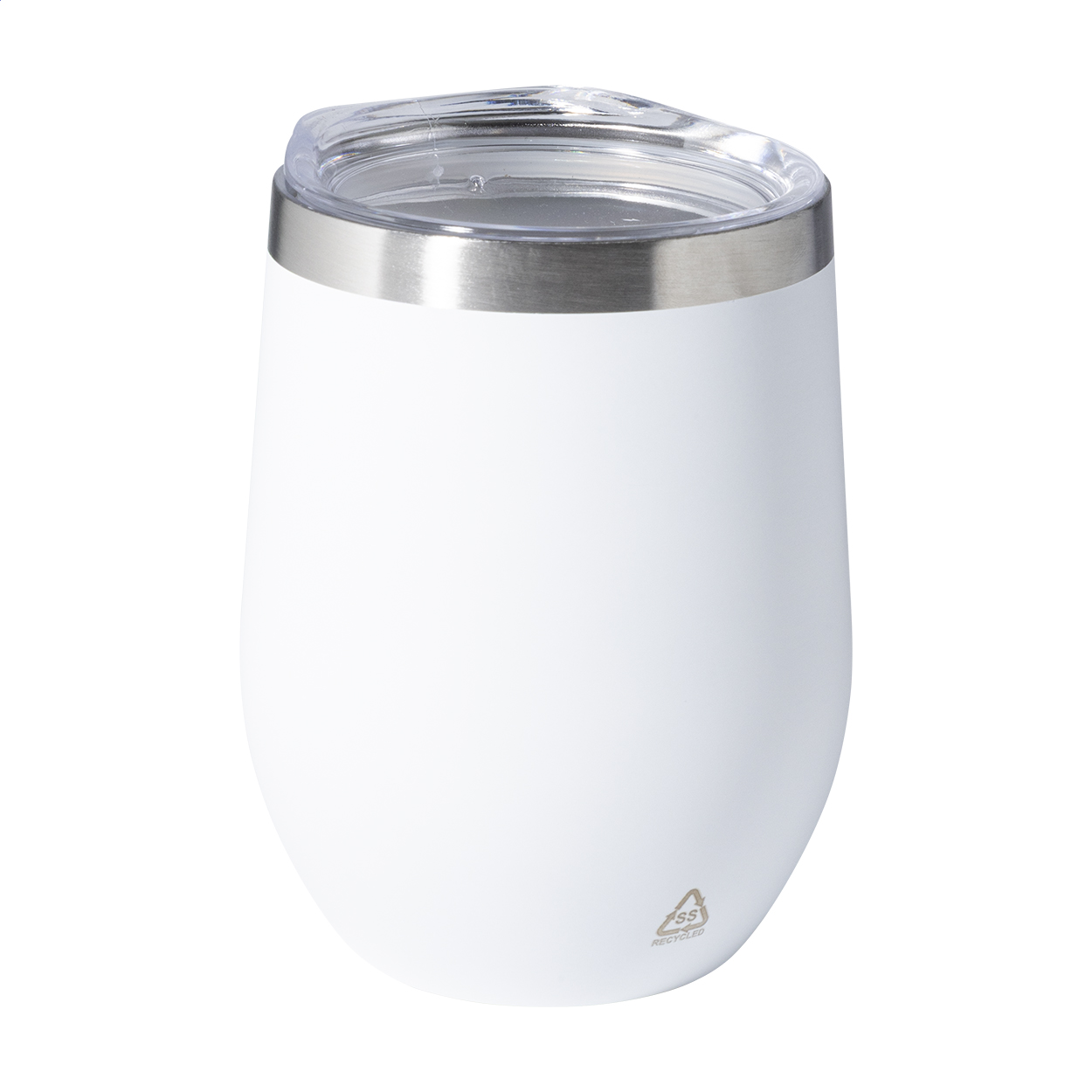 Kubek termiczny ze stali nierdzewnej o podwójnych ściankach z recyklingu i plastikową pokrywką do picia. 350ml.
