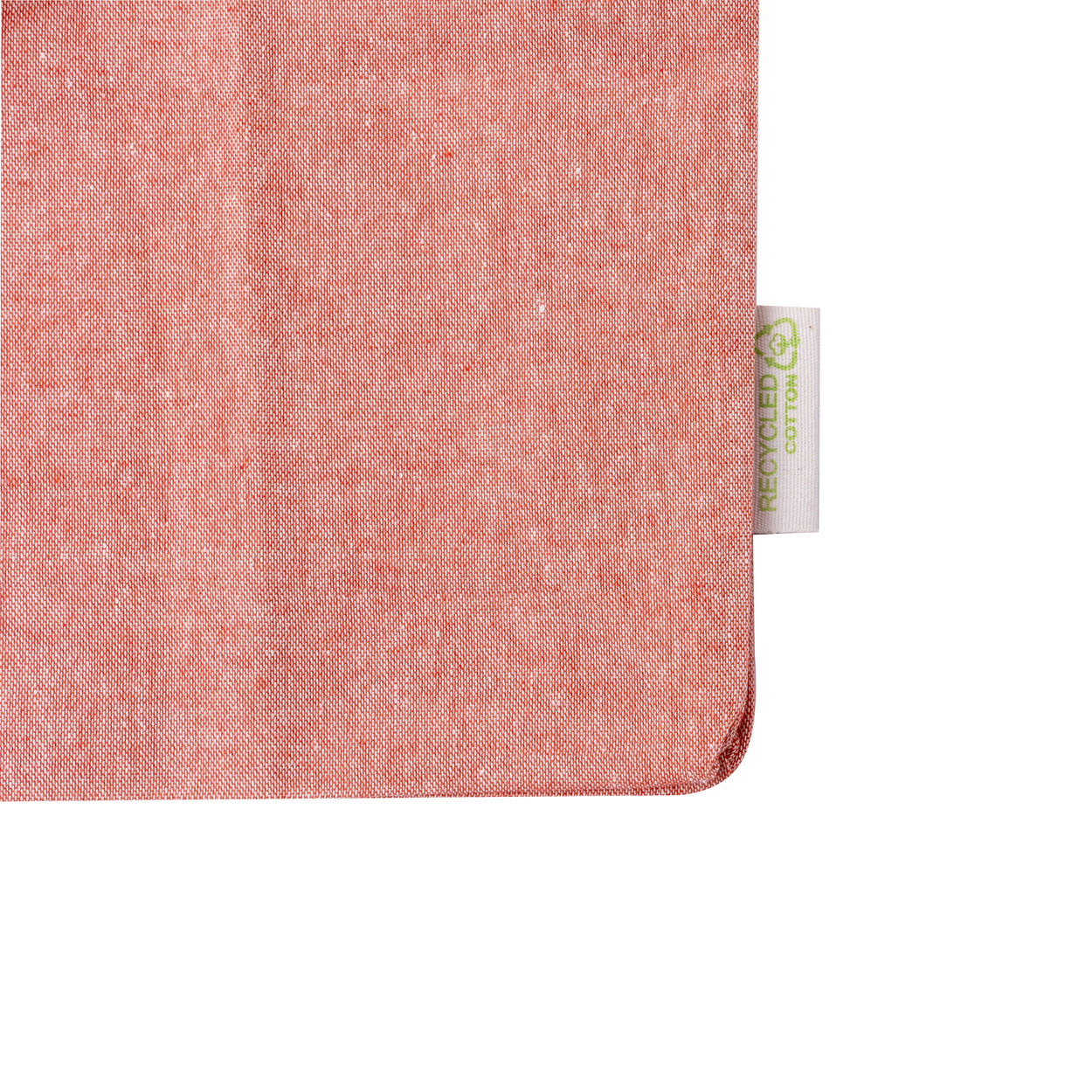 Torba na zakupy z bawełny pochodzącej z recyklingu z szerokim dnem, długimi uchwytami i charakterystyczną metką informującą o bawełnie pochodzącej z recyklingu. 100% bawełna z recyklingu, 140 g/m².