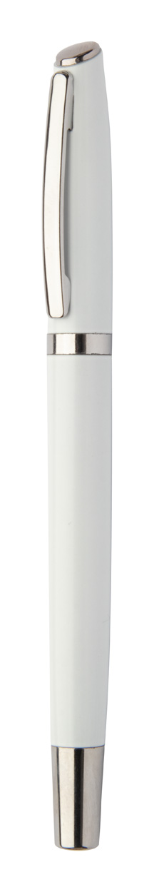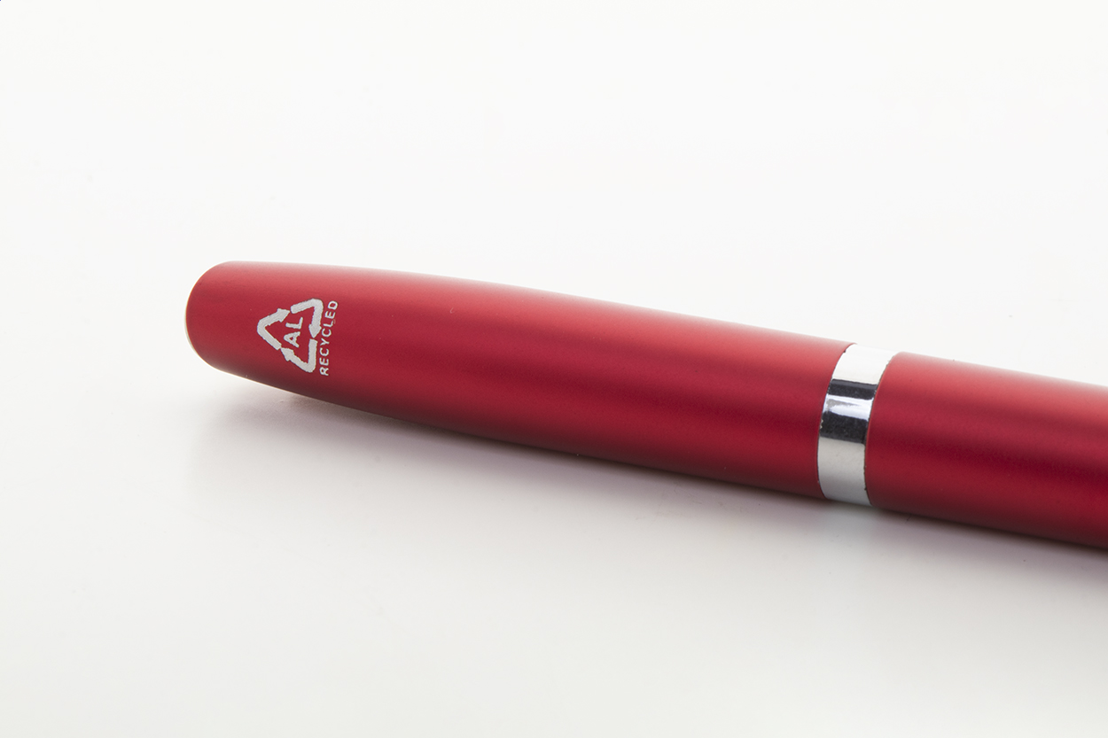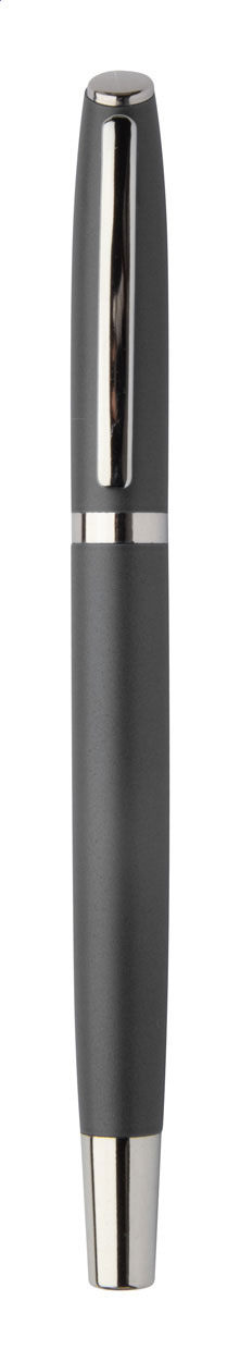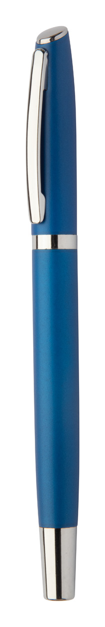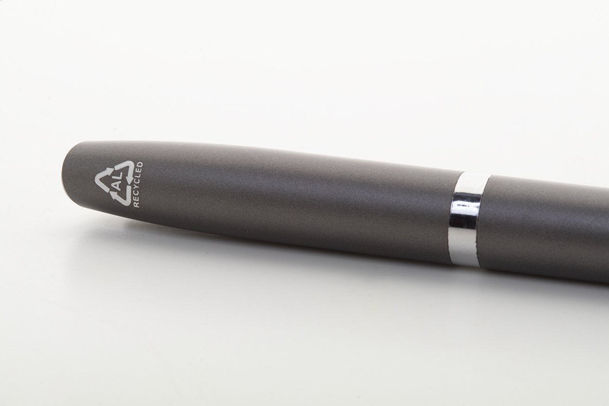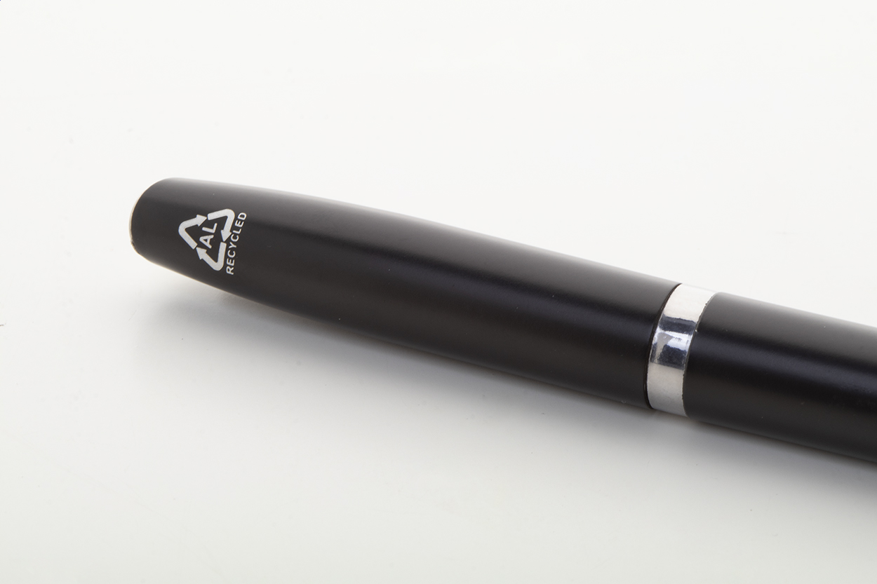 Zestaw piśmienniczy z aluminium z recyklingu w zestawie pióro kulkowe i długopis w pudełku upominkowym z czarnego papieru. Niebieski wkład.