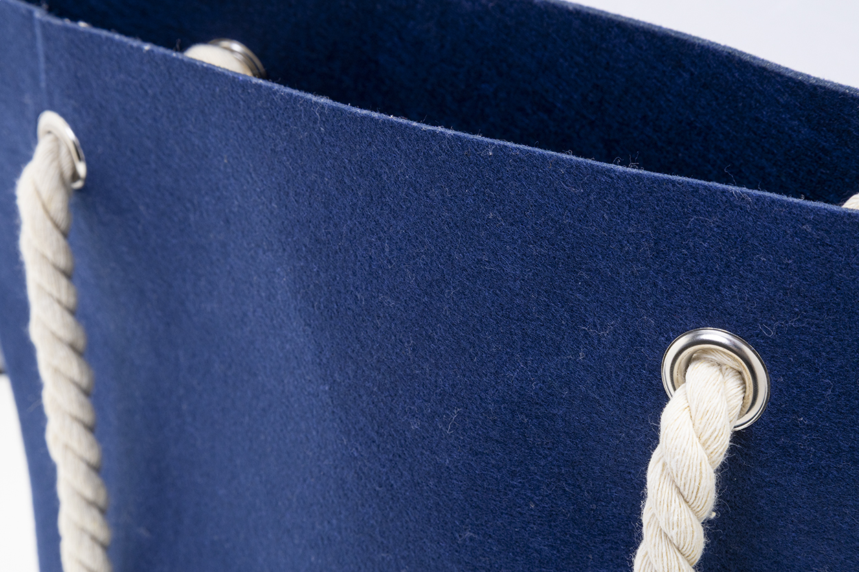 Torba plażowa lub na zakupy z filcu RPET z uchwytami z bawełnianego sznurka i klinem u dołu. Z charakterystyczną metką RPET.