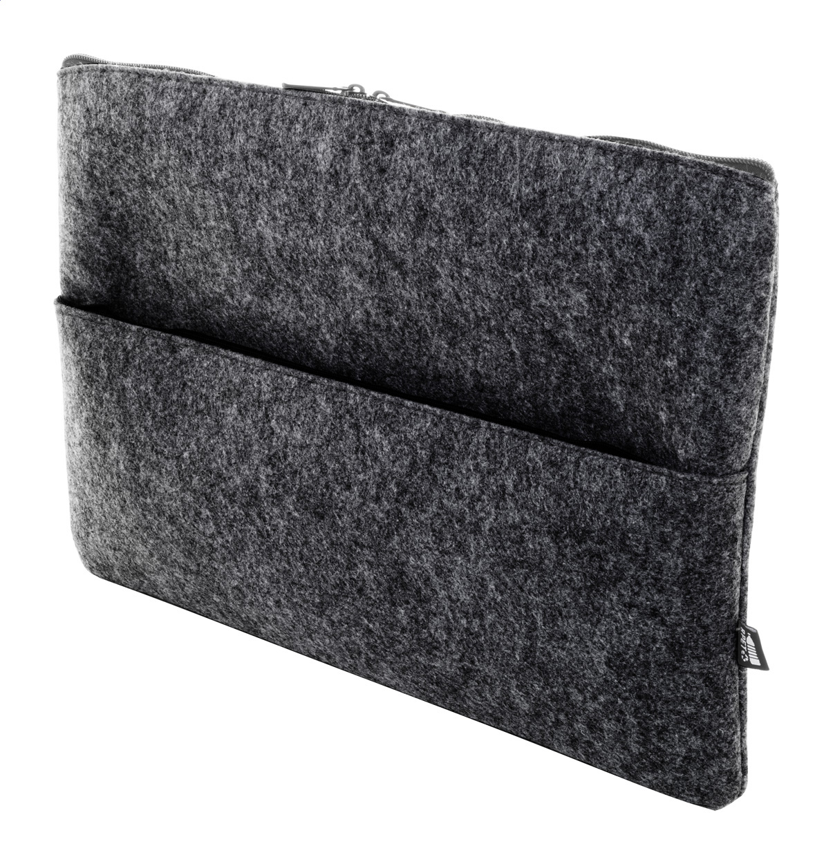 Torba na laptopa z filcu RPET z kieszenią na suwak i kieszenią z przodu. Pasuje do laptopów do 15″. Z charakterystyczną metką RPET.