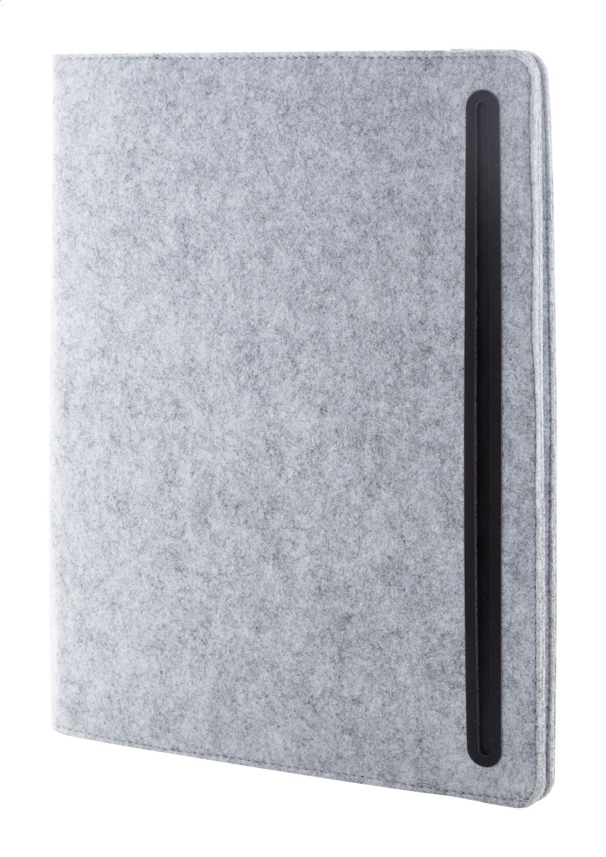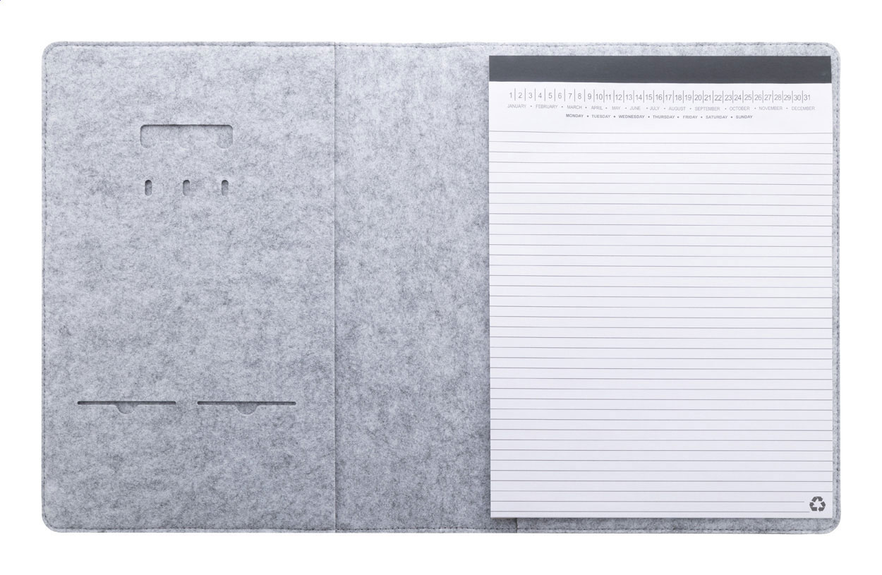 Teczka na dokumenty z filcu RPET w formacie A4 z przednią i wieloma wewnętrznymi kieszeniami organizacyjnymi. Z 20 kartkami w linie z papieru pochodzącego z recyklingu.