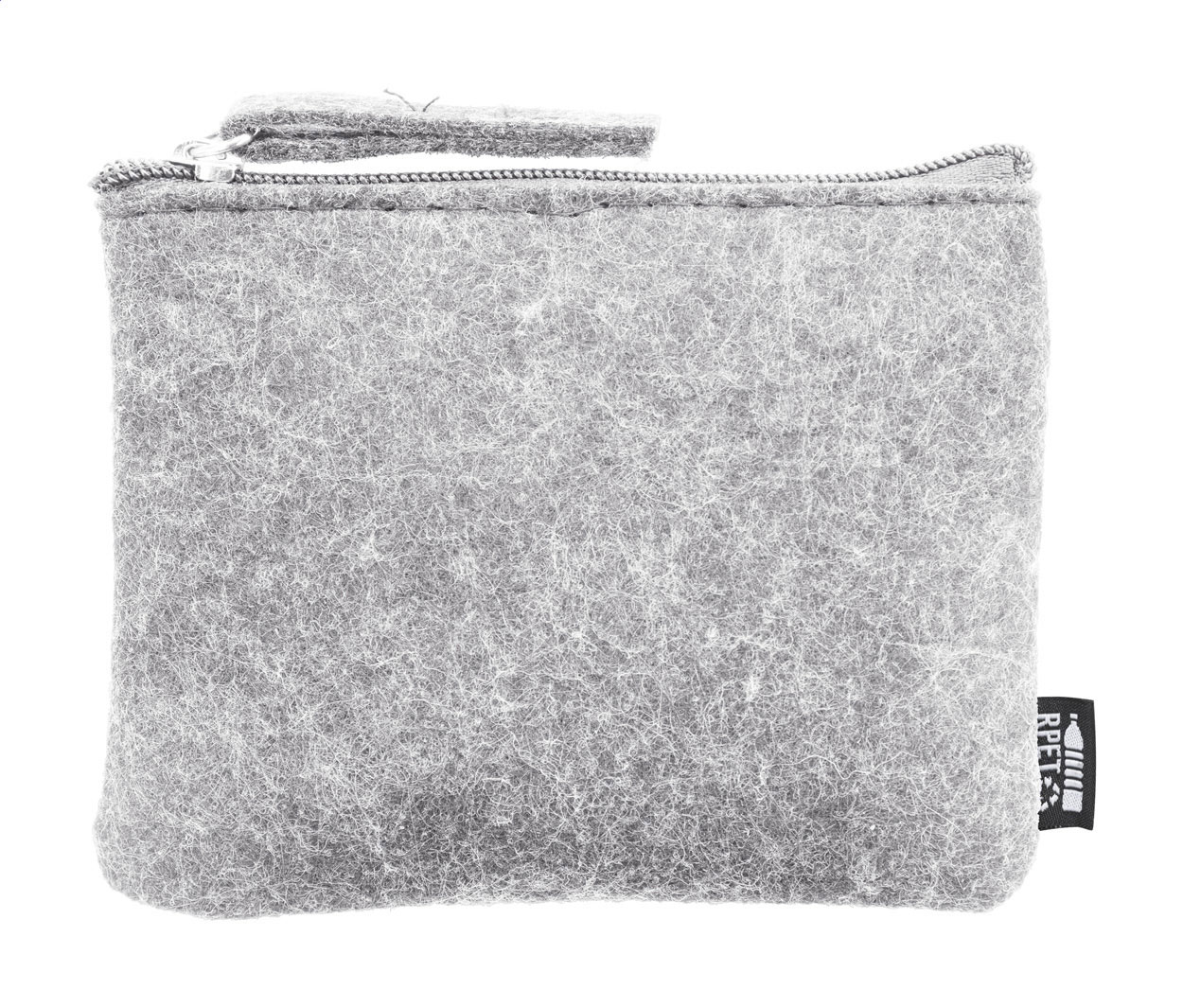Zapinana na suwak torebka z filcu RPET. Z charakterystyczną metką RPET.