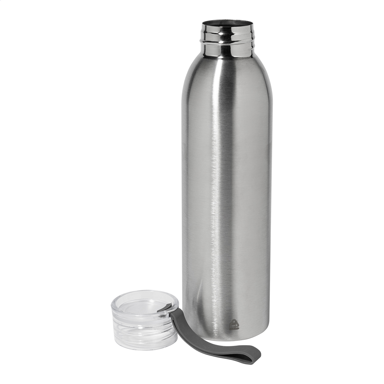 Butelka ze stali nierdzewnej z pokrywką z PP i silikonowym paskiem do noszenia, 600 ml.