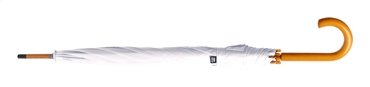 Parasol automatyczny z 8 panelami, metalową ramą, drewnianym trzpieniem i uchwytem. 190T pongee RPET. Z metką RPET.