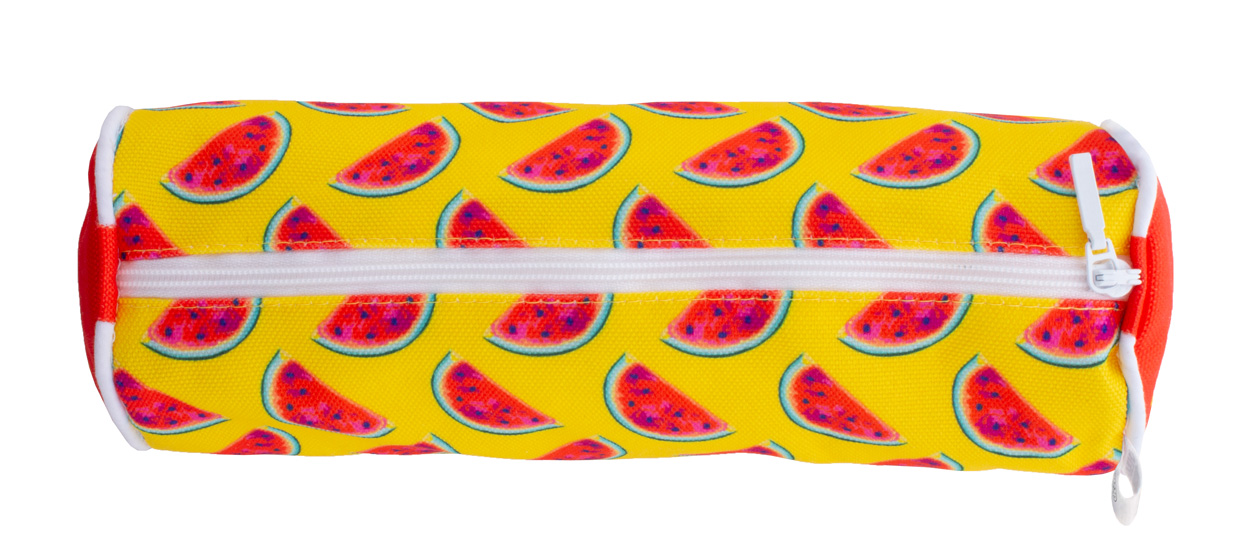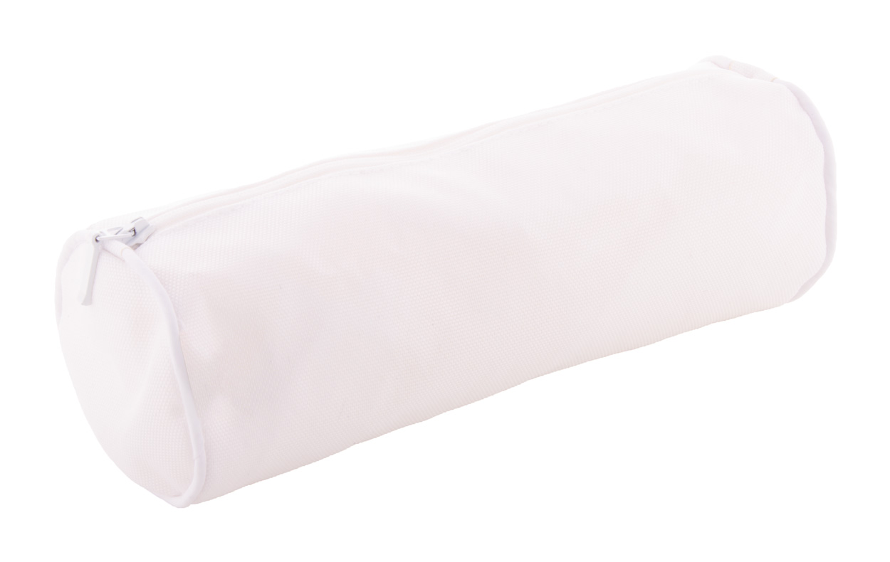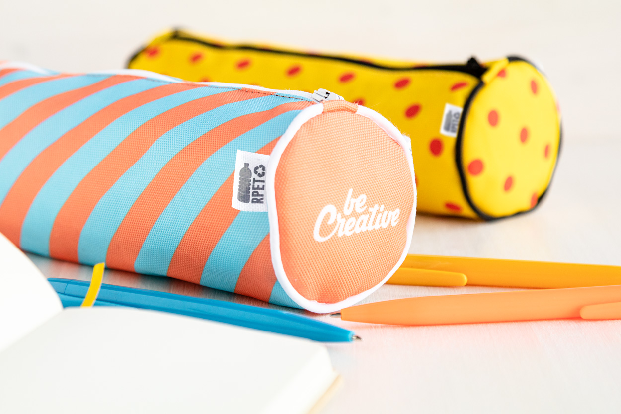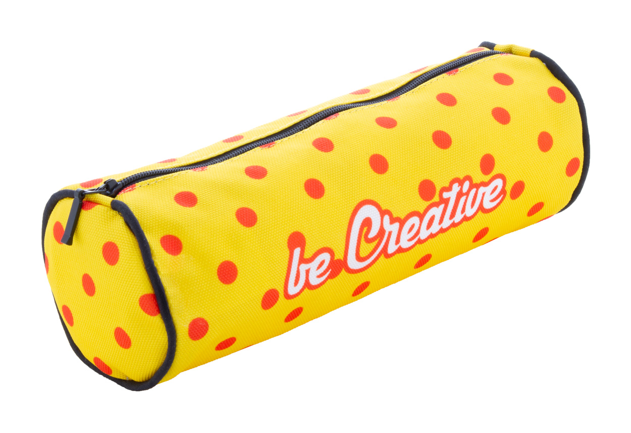 Personalizowany, okrągły piórnik na długopis z poliestru 600D RPET z zamkiem błyskawicznym. Z nadrukowaną grafiką sublimacyjną na całej powierzchni i metką RPET. Min. ilość: 50 szt.