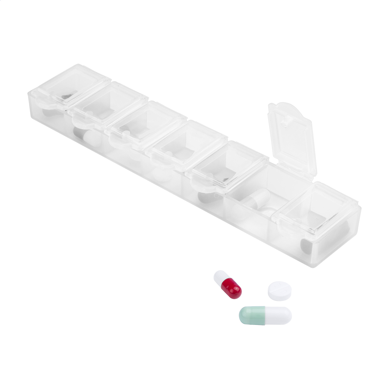 Pudełko na pigułki z tworzywa sztucznego, 7 wymiennych komór.