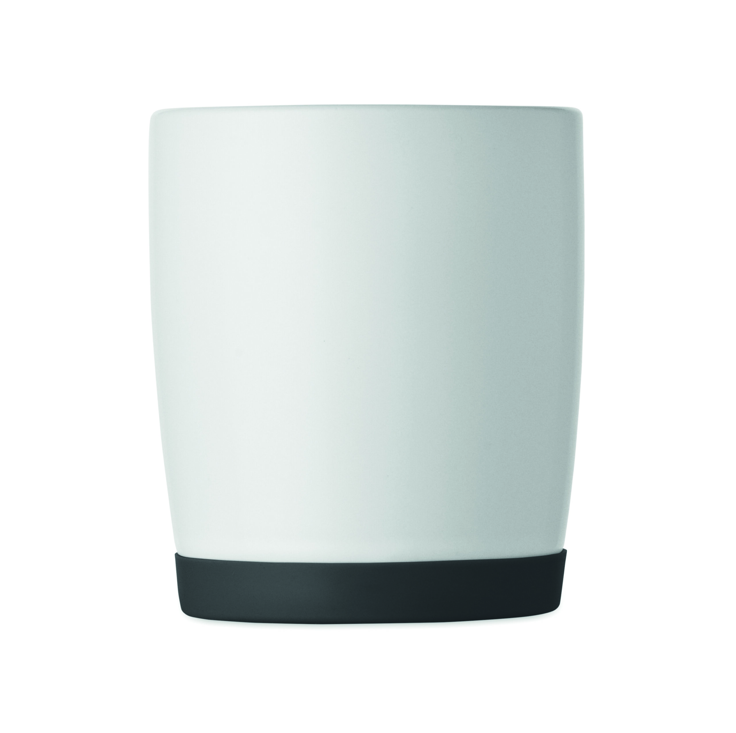 Ceramiczny kubek z białym matowym wykończeniem i silikonową podstawą zapewniającą stabilność. Pojemność 300 ml. Pakowany pojedynczo w białe pudełko kartonowe.