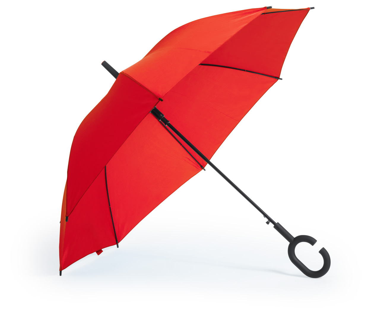 Automatyczny, wiatroodporny parasol z 8 panelami, metalowym trzpieniem i stelażem z włókna szklanego, oraz gumowym uchwytem na ramię. 170T poliester.
