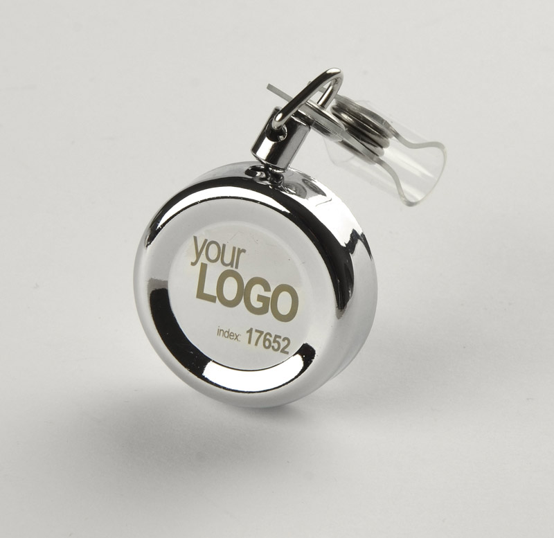 Skipass VIP to wytrzymały i elegancki produkt – wykonany jest z metalu, a jego średnica to 3,2 cm. Posiada mocowanie w postaci metalowego klipsa. Elastyczna linka o długości ok. 70 cm zakończona jest uchwytem na karnet. Znakowanie jest możliwe na metalowym korpusie.