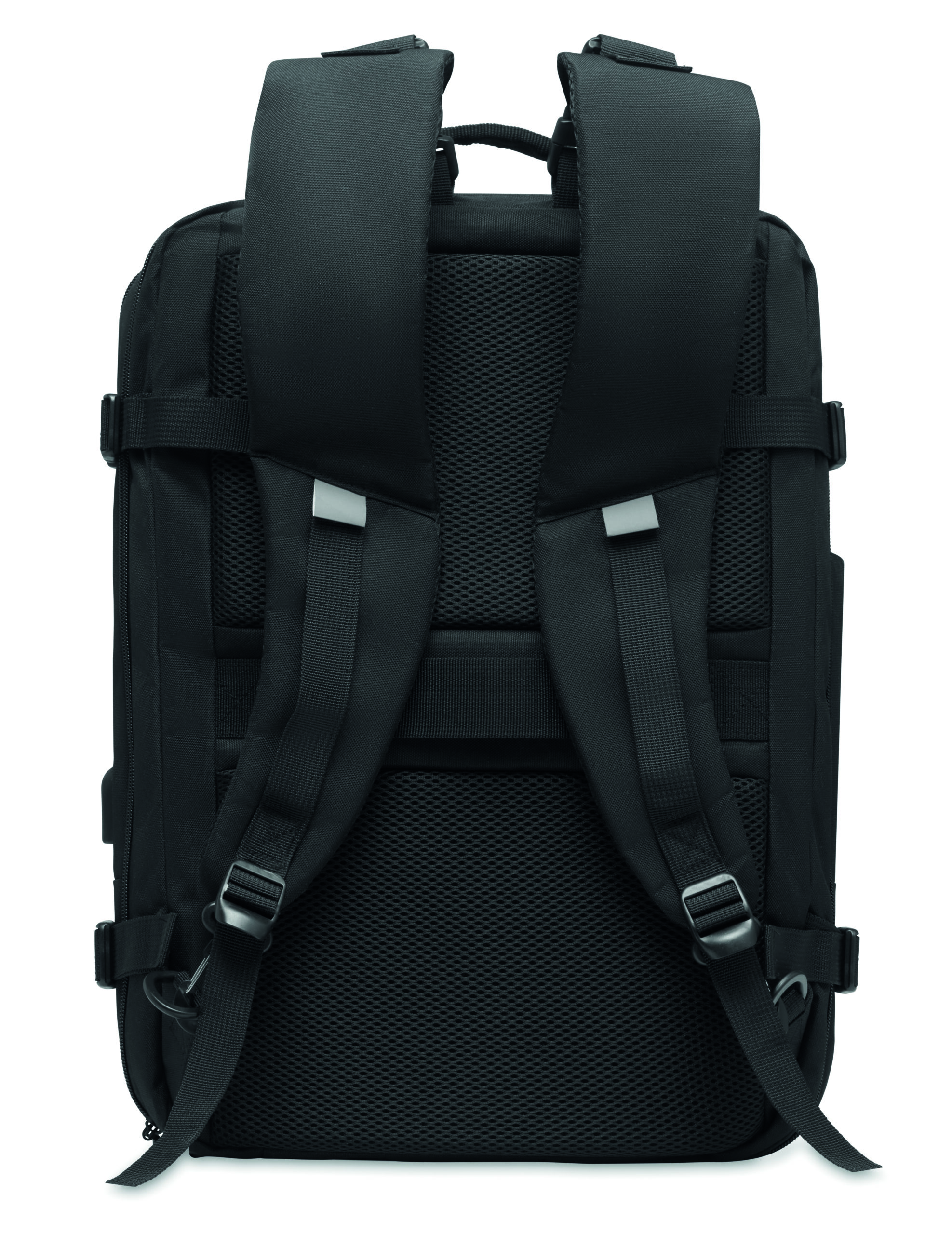 Plecak Travel Tech wykonany z poliestru 600D RPET. Modułowy, zawiera kilka przegródek.