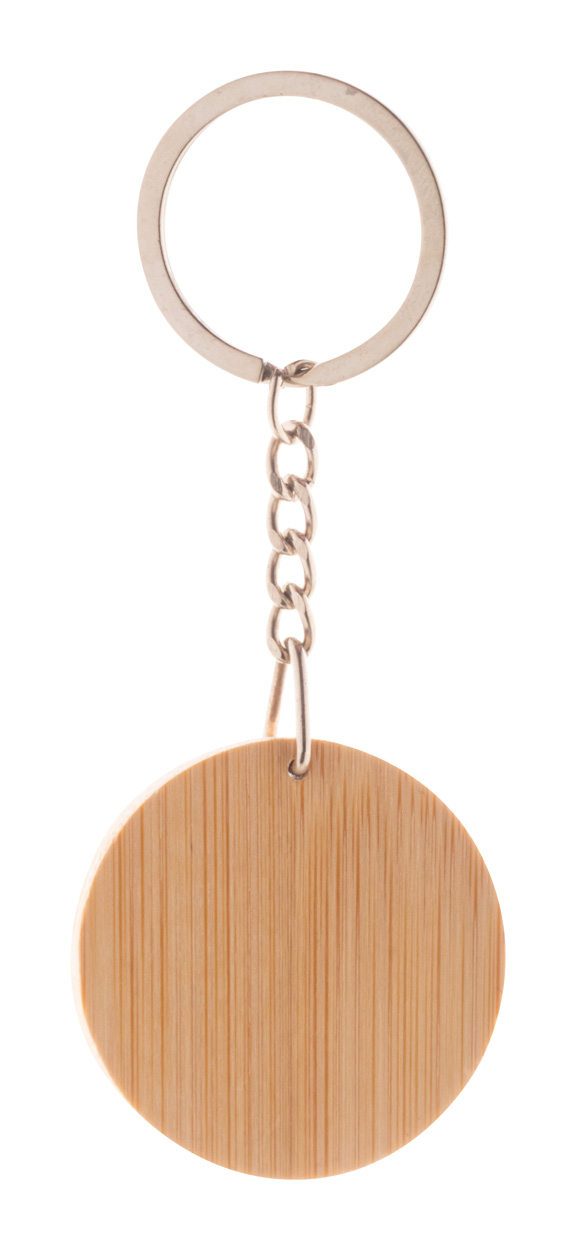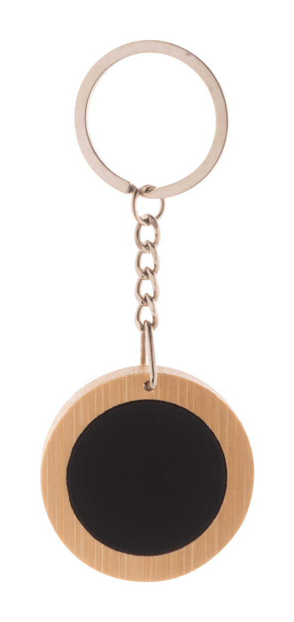 Bambusowy brelok z gumowaną płytką ze stali nierdzewnej i metalowym kółkiem. Ze specjalną powłoką do grawera lustrzanego.