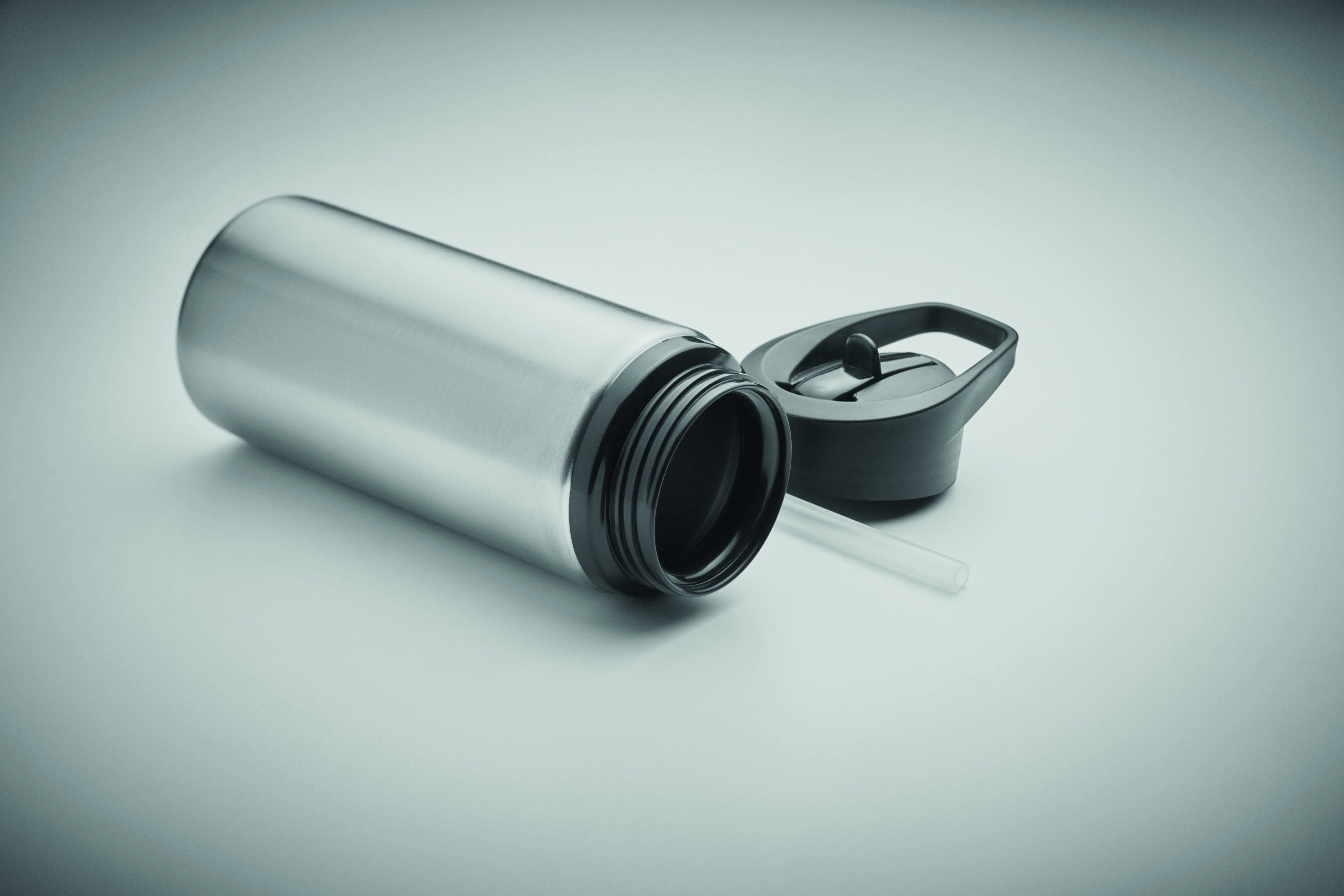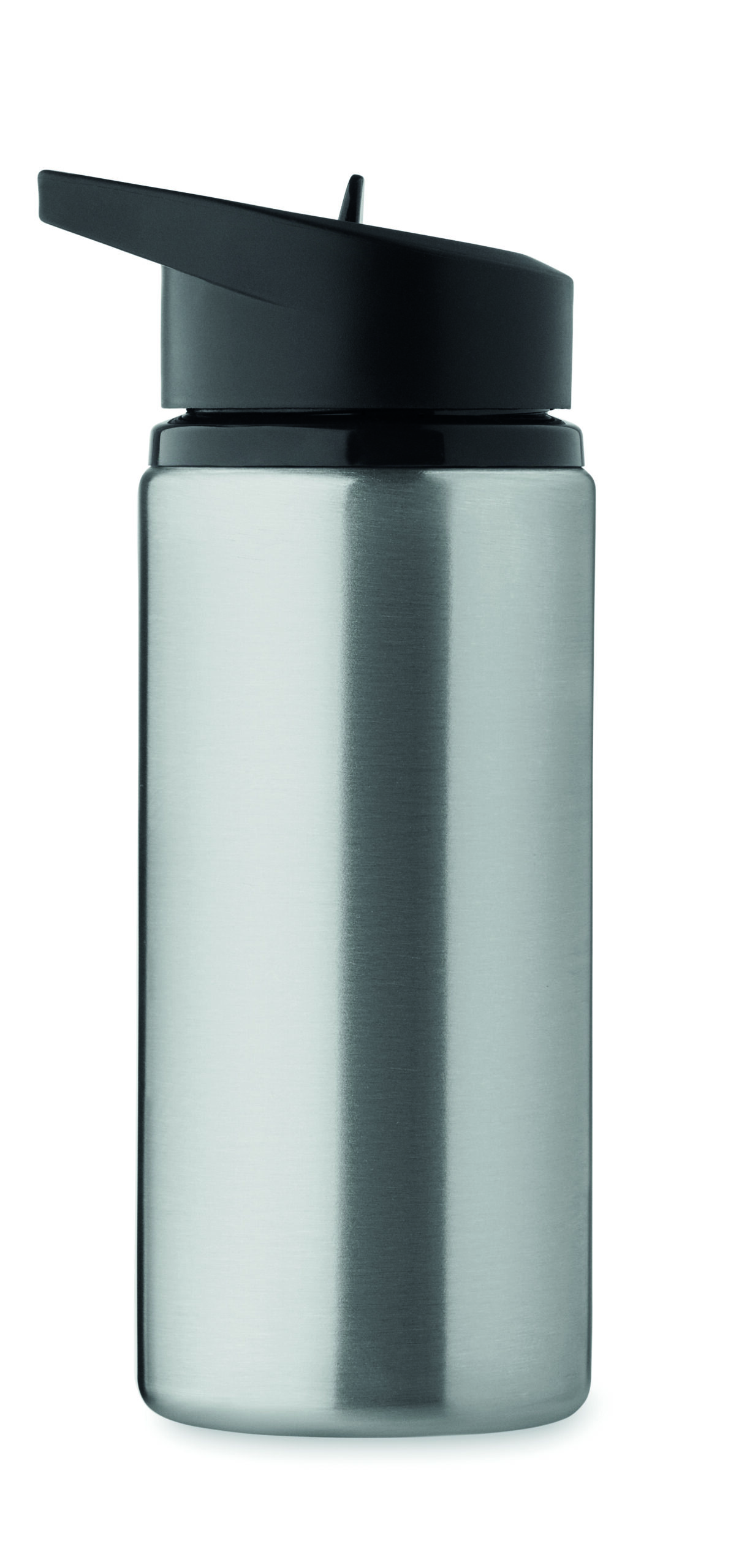 Jednościenna butelka z recyklingowanej stali nierdzewnej (90% stali nierdzewnej z recyklingu i 10% stali nierdzewnej) ze składanym ustnikiem, słomką i pokrywką z uchwytem do przenoszenia. Pojemność: 500 ml. Ponieważ jest to butelka z pojedynczą ścianką, może dochodzić do wymiany ciepła.