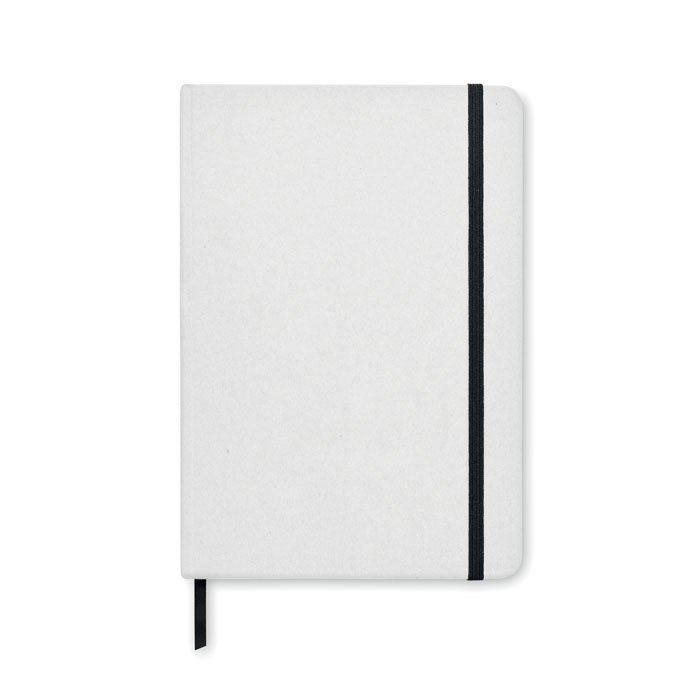 Notatnik A5 z twardą okładką z recyklingowanego kartonu. 160 z papieru w linie (80 kartek) papier mineralny. Dopasowana gumka zamykająca i tasiemka do oznaczania stron. FSC®-certified | FSC MIX CREDIT, P7.1 , FSC-C213206