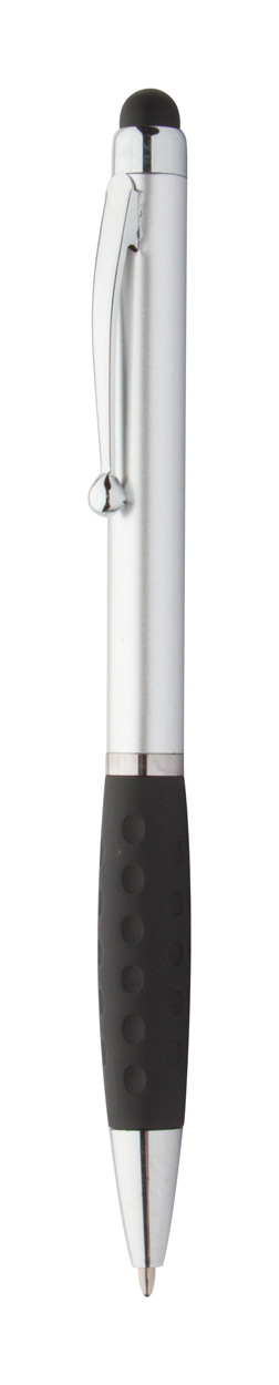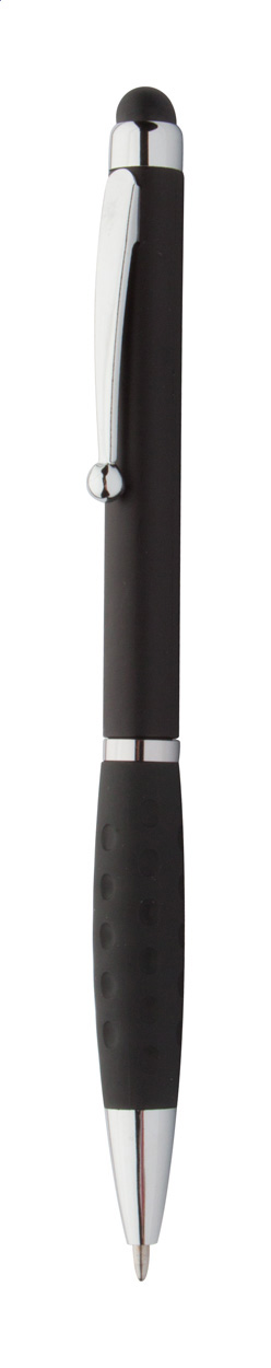 Plastikowy długopis z gumowym uchwytem i koncówką do ekranów dotykowych. Dostarczany z niebieskim wkładem.