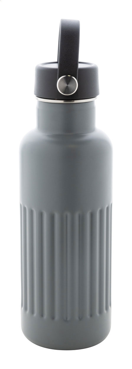Butelka izolowana próżniowo, z podwójnymi ściankami, wykonana ze stali nierdzewnej z recyklingu, z plastikową pokrywką PP. Pojemność 500 ml.