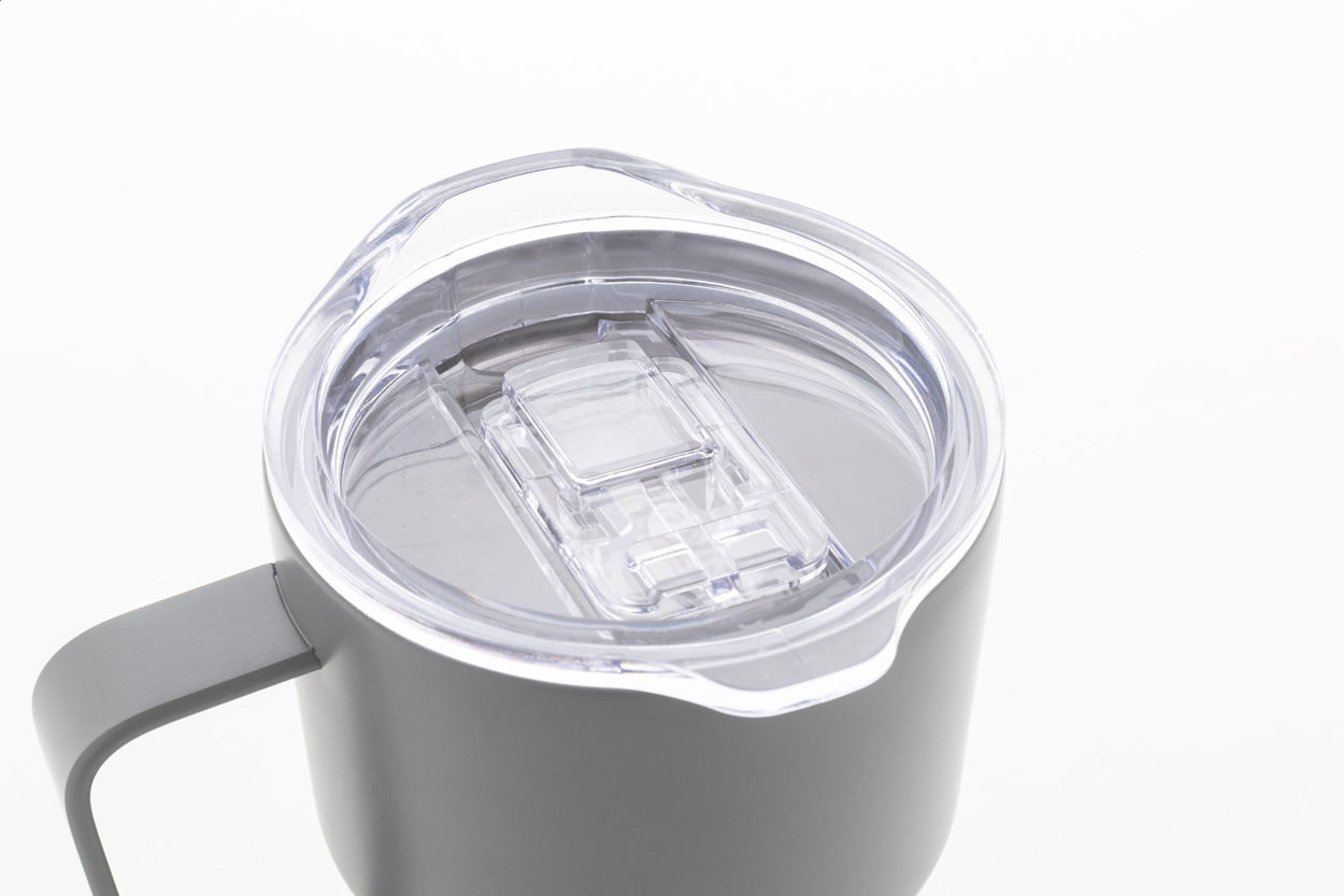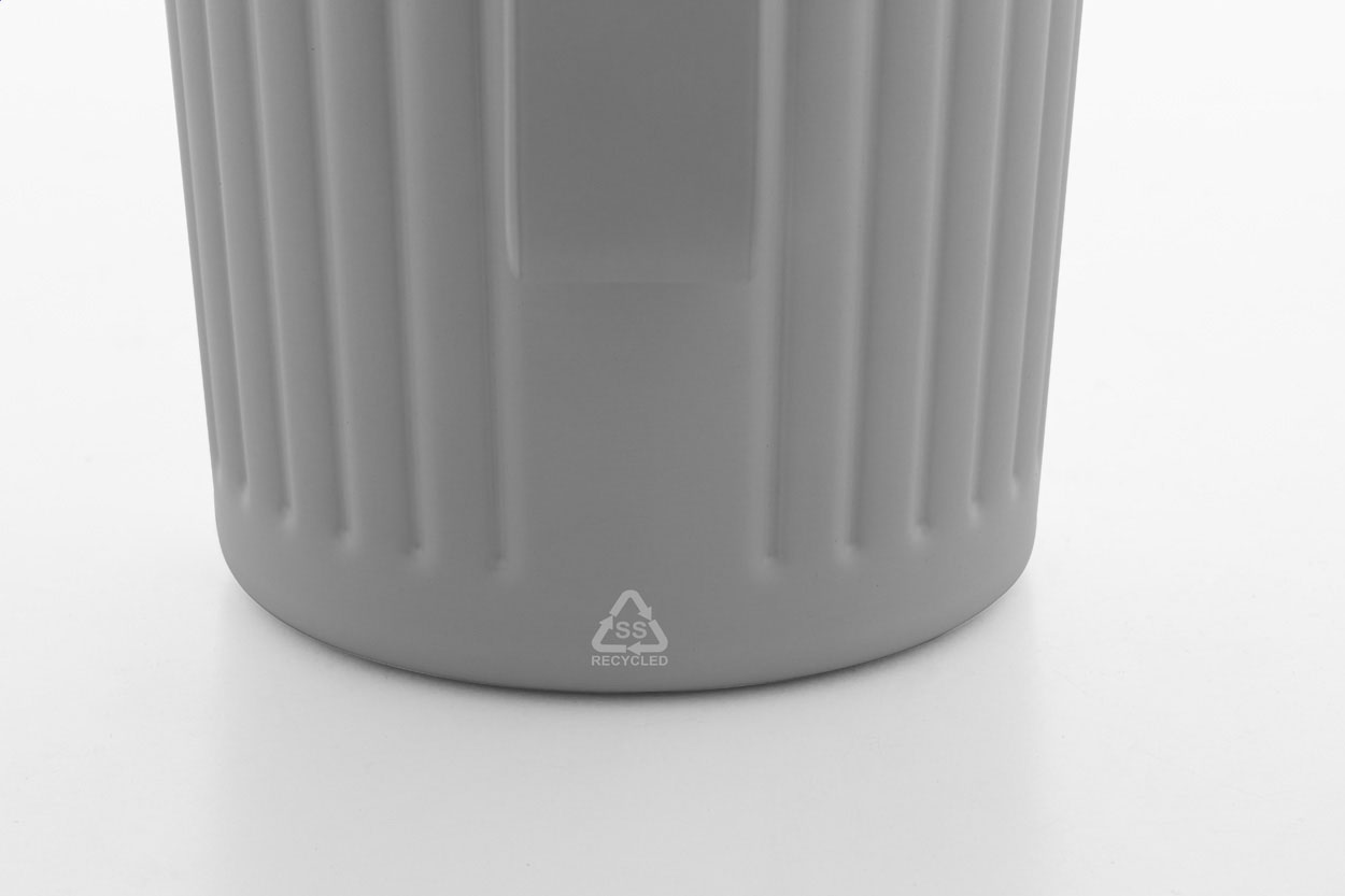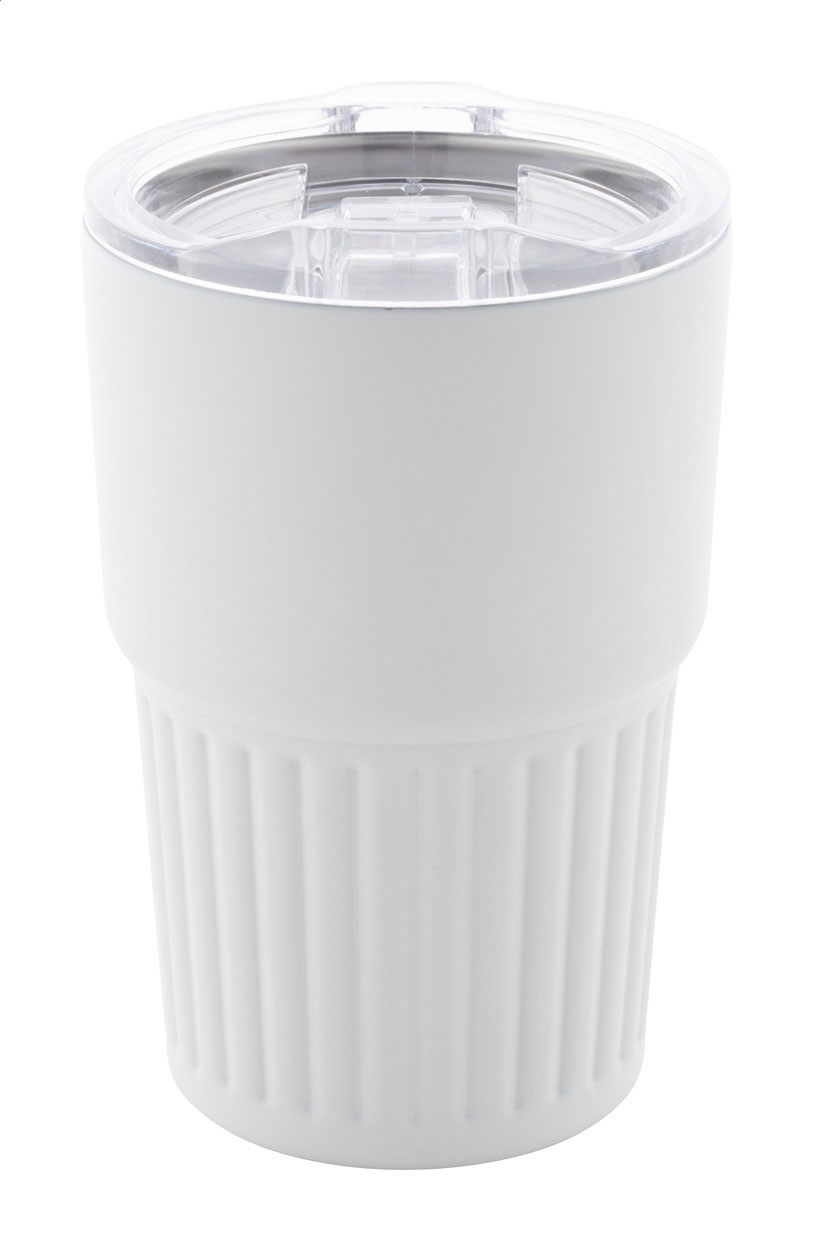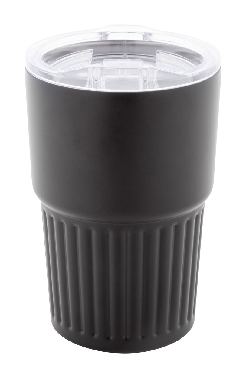 Izolowany kubek termiczny z podwójnymi ściankami, wykonany ze stali nierdzewnej z recyklingu, z pokrywką z tworzywa ABS. Pojemność 470 ml.
