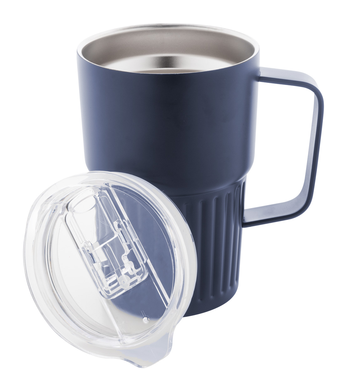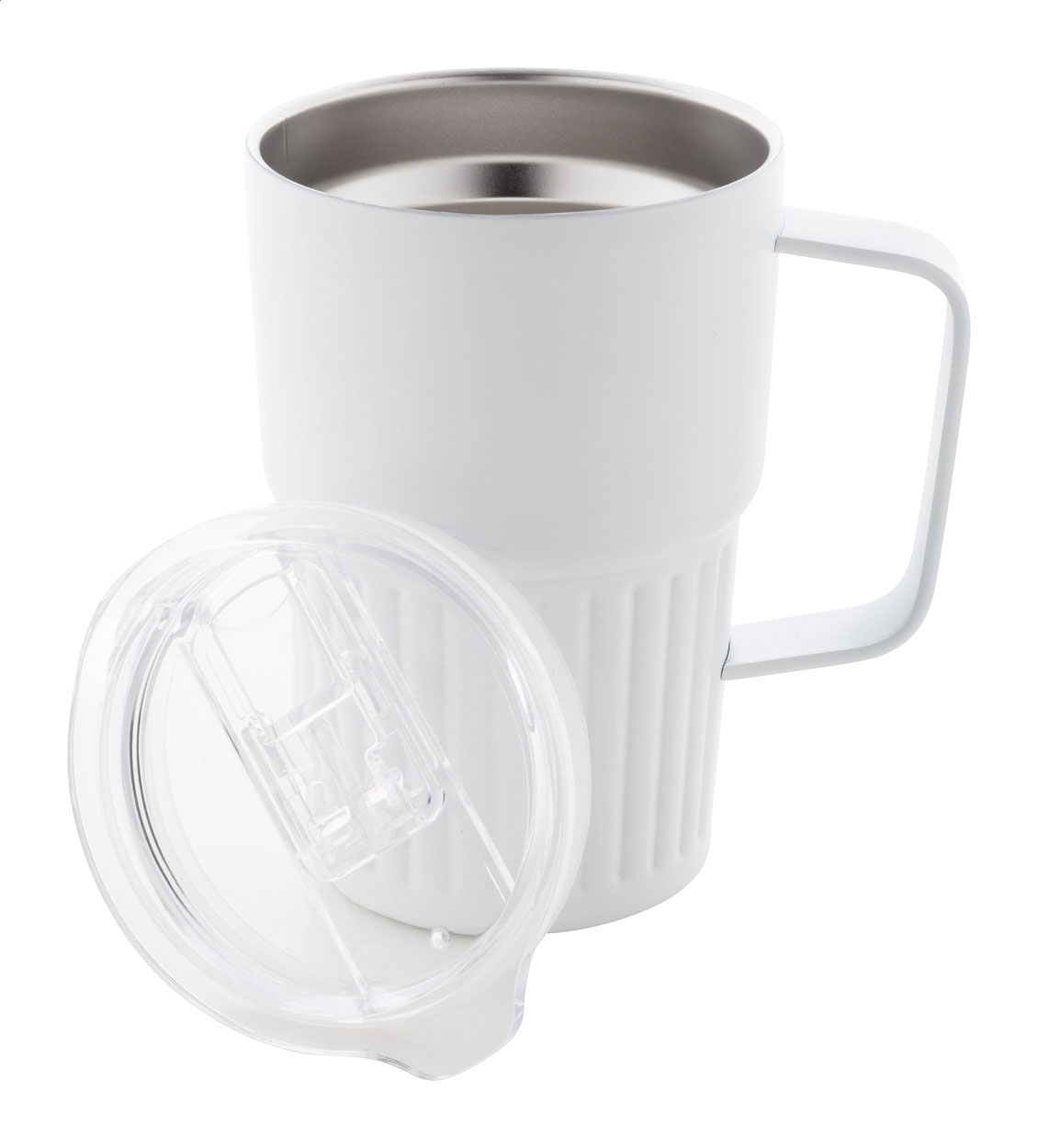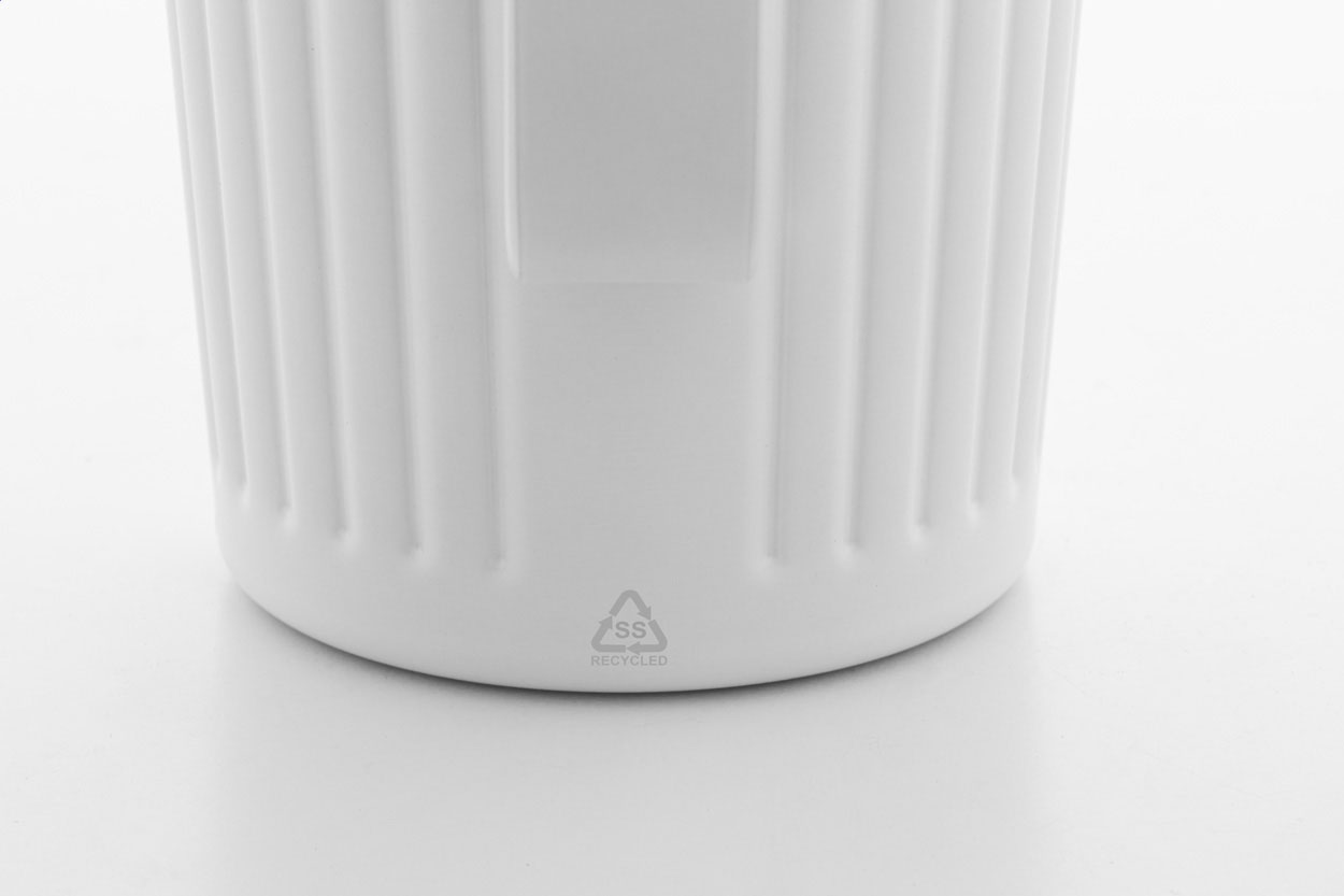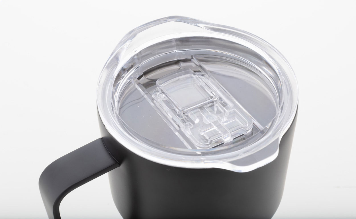Izolowany kubek termiczny z podwójnymi ściankami, wykonany ze stali nierdzewnej z recyklingu, z pokrywką z tworzywa ABS. Pojemność 470 ml.