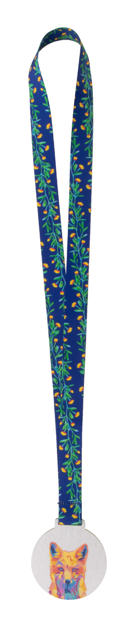 Personalizowany medal z kompozytu szczotkowanego aluminium z full kolorową grafiką. Na smyczy RPET z nadrukiem sublimacyjnym. Z nadrukowaną grafiką sublimacyjną i UV LED. Min.ilość: 100 szt.