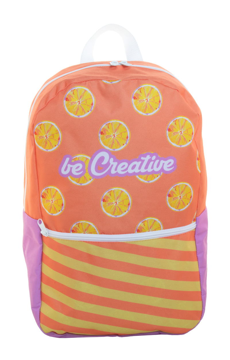 Wykonany na zamówienie plecak RPET z zapinaną na zamek komorą główną i przednią kieszenią, wyściełanymi plecami i paskami na ramiona. Z nadrukowaną grafiką sublimacyjną na całej powierzchni. Poliester 600D RPET z charakterystyczną metką RPET. Min. ilość: 25 szt.