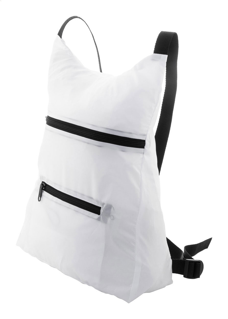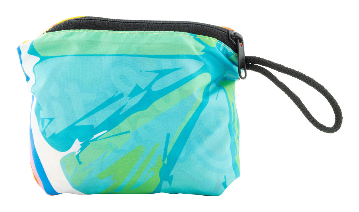 Składany plecak RPET wykonany na zamówienie z główną komorą na suwak i przednią kieszenią na suwak. Z nadrukowaną grafiką sublimacyjną na całej powierzchni. Poliester RPET 190T z charakterystyczną metką RPET. Min. ilość: 25 szt.